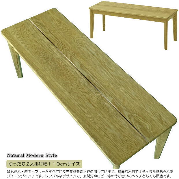 | 【商品名】 | ナチュラル感あふれるタモ無垢材のゆったり2人掛用幅110cmシンプルなダイニングベンチ | |