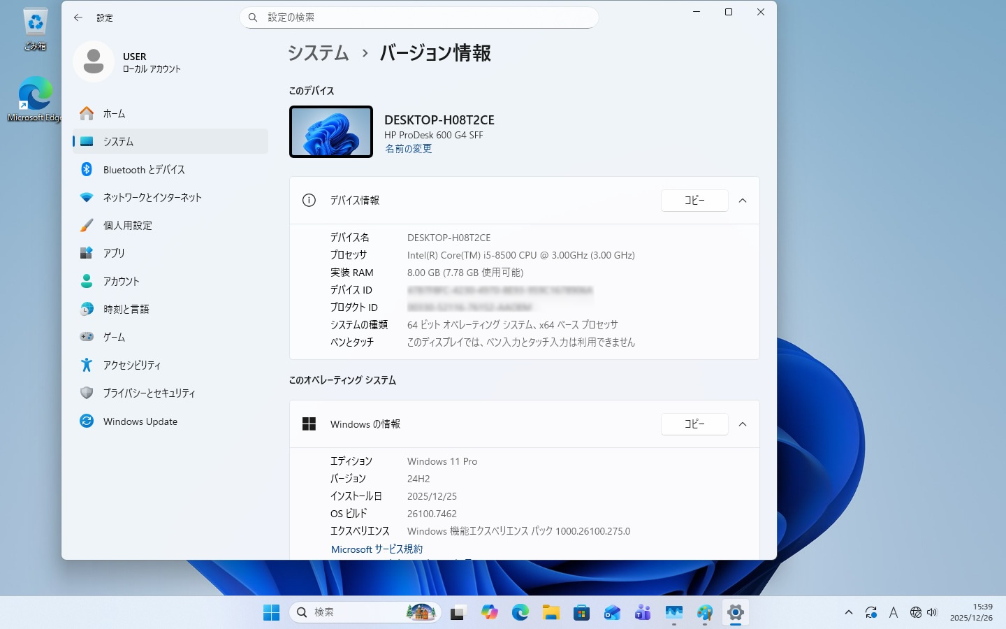 | ・商品の状態 | ★HPのクラウド回復クライアントソフトを使用してリカバリをダウンロードし、Windows10 Pro 64bitでリカバリーしています。 ★Officeはありません。 ★OSのバージョンをWindows11 Pro 64bit 24H2にアップデートしています。 ★電源入れてからOSが立ち上がるまでに少し時間かかっています。 ★BIOSの表示確認済みです。 ★USB、LAN、USB-C、RGB、DisplayPortの動作確認済みです。 ★CD、DVDの読み込み確認済です。書き込みは未確認です。コピーしたメディアなどメディアによって読み込まない場合もあります。 ★イヤホンジャック、PC AUDIOケーブルの挿し口等、上記以外の動作は全て未確認です。 ★メモリー、HDDはチェックツールによる動作確認はしておりません。 ★分解しての内部チェックは行っておりません。 ★内部はエアーをかけて埃などは取り除いています。 ★左側側面前方に小さな擦れた傷、真ん中に擦れた傷があります。(写真17枚目) ★右側側面前後に小さい擦れた傷があります。(写真17枚目) ★細かい傷や汚れなどはあります。 ★その他のデバイスについてもすべて未チェックです。 ★すべてを完全にチェックできていません、確認できている範囲での出品となります。 ★写真に写っている状態でのお渡しとなります。 簡易メンテでのお渡しです ※中古品ですので、経年なりの傷や使用感がございます。 神経質な方のご入札はご遠慮下さい。予めご了承お願いします。 | ||||||||||||||||||||||||