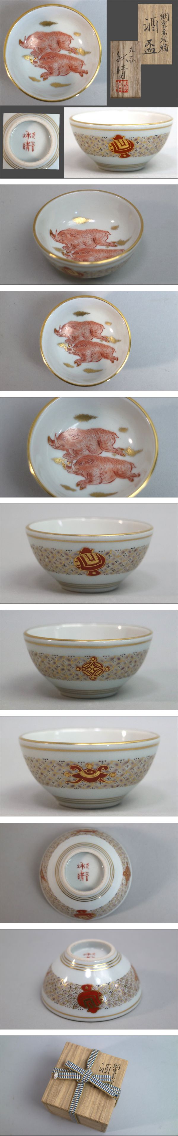 九谷焼 井上秋晴 細密赤絵猪図 酒盃 共布 共箱 略歴付き [浏览原始页面]