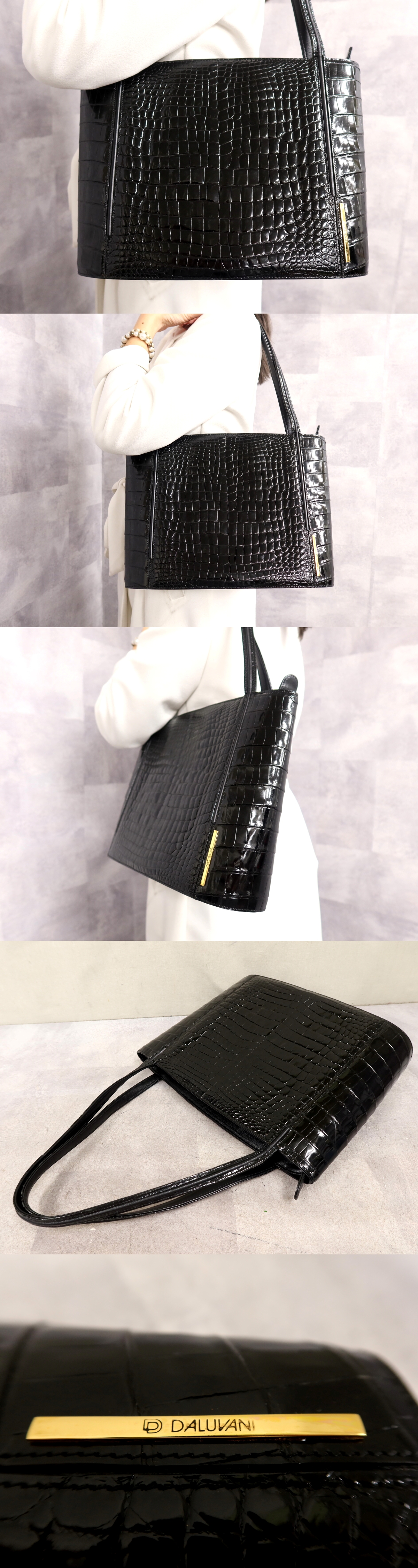 ●超美品●DALUVANI ダルバーニ●シャイニング クロコダイル 本 ワニ 革●ショルダー バッグ●黒●ゴールド金具●肩掛け●B5 収納●Js64012 [浏览原始页面]