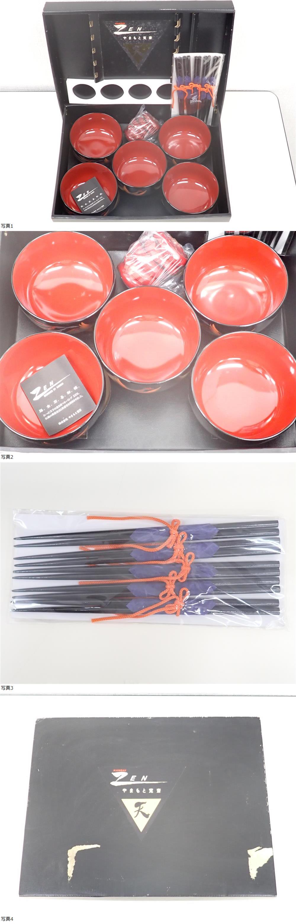 | 9250★山本 寛斎 YMAMOTO KNSAI ZEN 漆器 箸付き汁椀 鳳凰 口径約11cm 漆塗り お汁椀 汁椀 5客 セット 紙箱入り 未使用品・保管品 |