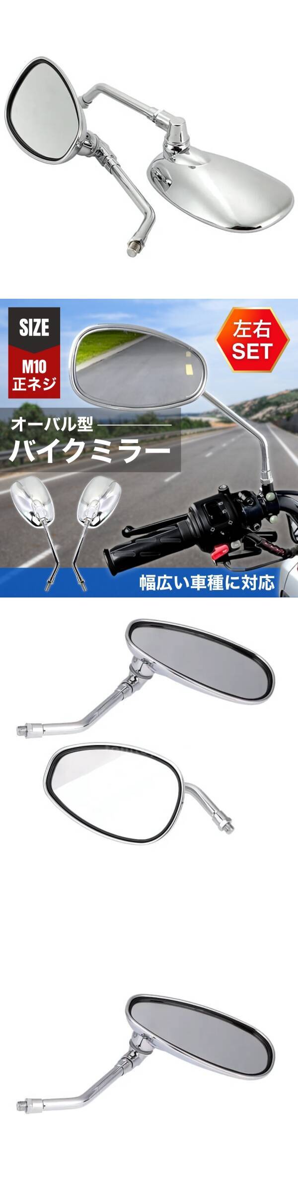 | 商品説明 | ご覧いただきありがとうございます。 ●商品説明 汎用性の高い オーバル型バイクミラー(M10 正ネジ) です。 ショートタイプ&クロームメッキ仕上げで、カスタム感を引き立てます。 大きめのミラー面で視界が広く、安全確認もスムーズ。 内側に折りたたんで設置できるため、車幅をコンパクトにすることも可能です。 取付ネジはM10(正ネジ)仕様。適合しない場合でも、市販の変換アダプターを使用すれば装着可能です。 シルバーメッキカラーは幅広い車種にマッチし、カスタム・交換用・補修用としてもおすすめです。 ●参考適合車種 HONDA(ホンダ):スーパーカブ50 / スーパーカブ110 / グロム / PCX / リード / モンキー / ゴリラ / ダックス / エイプ / ホーネット / CB400SF / CBR / CBX / VT250F など YAMAHA(ヤマハ):マジェスティ250 / シグナス / JOGZR / TW200 / XJR / RZ250 / RZ50 など SUZUKI(スズキ):アドレス125G / アドレスV125 / レッツⅡ / バンディット / GSX / バリオス など KAWASAKI(カワサキ):ゼファー400 / ZRX400 / Z250 / バリオス など ※上記は参考です。必ず取付サイズをご確認ください。 ●商品仕様 タイプ:オーバル型ミラー(ショートタイプ) ミラーサイズ:約80mm×145 mm ネジサイズ:M10 正ネジ カラー:クロームメッキ ●お支払い方法 !かんたん決済 ●発送について 【ゆうパケットプラスで発送します】 発送日 :お支払い後1~3日以内 到着目安:発送後2~4日程度 ※商品は配達員による手渡しとなります ※遠方の方はもう少しかかる場合もございます 【配送方法の変更はできません】 ●注意事項 ・落札後は期限内にお支払いください ・商品画像の転載や説明文のコピーはお止め下さい 〇初期不良は対応しますので、何かあれば「取引完了前に」ご連絡下さい |