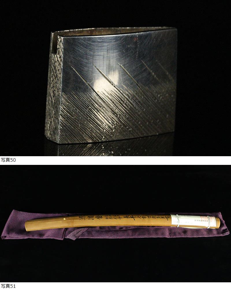 | ■刀剣のサイズ表示について 元幅・・・焼出し付近を測定しております 先幅・・・横手筋付近を測定しております 元重ね・・・焼出し付近の厚みを測定しております 先重ね・・・横手付近の厚みを測定しております (多少の誤差はご容赦ねがいます) ■銃砲類のサイズ表示について 全長・・・銃身先から台木尻までを測定しております 銃身・・・台木を除いて金属部分を測定しております (多少の誤差はご容赦ねがいます) 当社が出品する刀剣類は、入手した時の状態のまま出品しております。 ハバキ、小道具等も当社で調整したり付け替えたりはしておりませんので、合わせではないかというクレームは一切受け付けません。 刀身の疵も隠すことなく載せておりますので写真をよくご覧になってご入札ください。 疵に関して、説明がない等のクレームは一切受け付けません。 写真ではわかりにくい部分は質問欄やお電話でお問い合わせください。 但し、説明欄に表記のない刃切れに関してのみ返品やご相談に応じます。 ※ご落札しご購入されお手元に届いてから20日以内に 登録証に記載されている各都道府県の教育委員会にご連絡し 登録証の所有者変更を必ず行ってください | |||