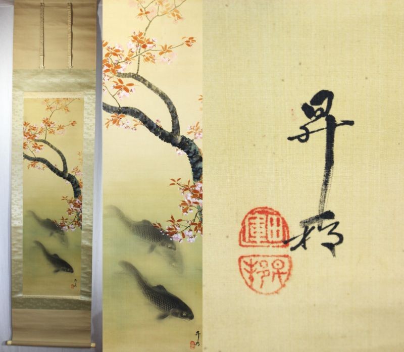 【桜に遊鯉】(仮題)の軸装品です