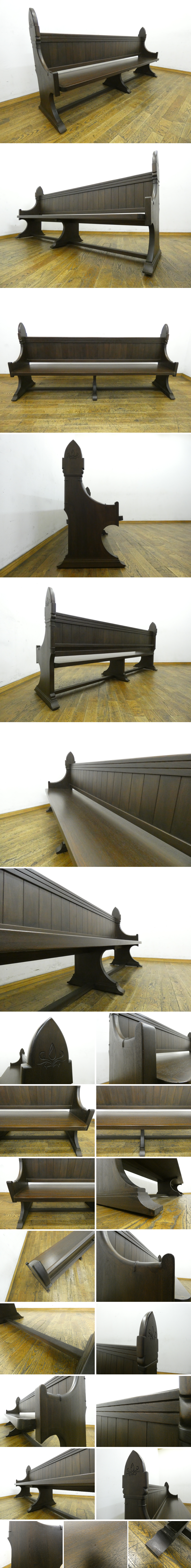 ◆RN442◆美品◆オーク材 楢材◆チャーチベンチ◆幅222cm◆重厚◆木製◆チャーチチェア◆教会◆結婚式場◆店舗什器◆カフェ◆スタジオ