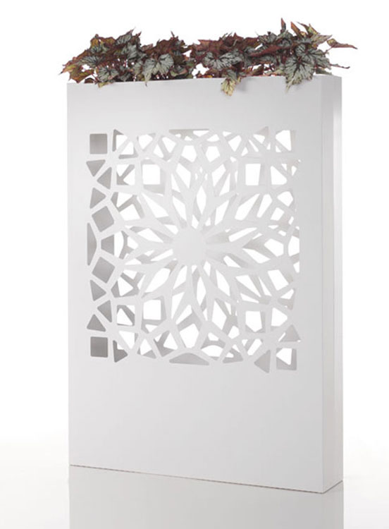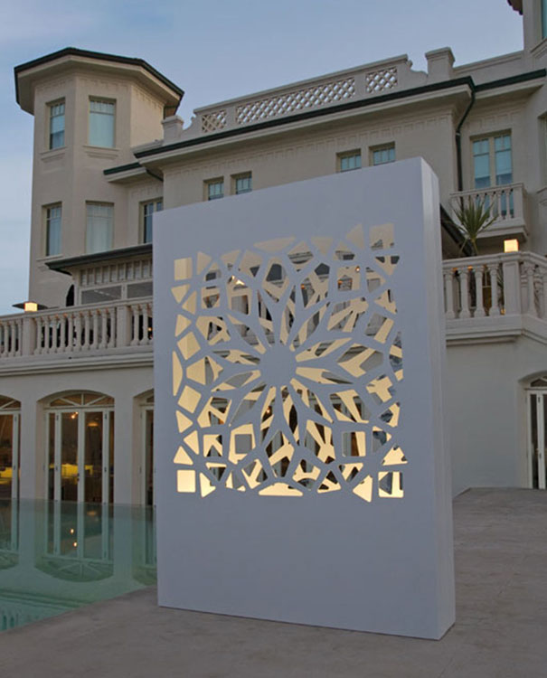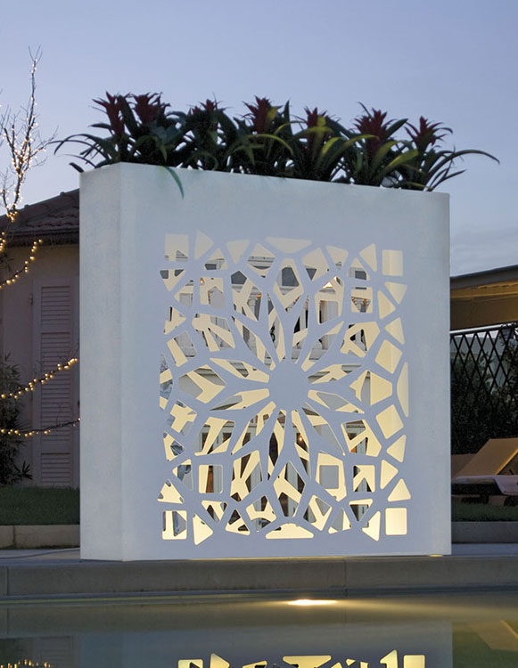 最新のレーザーカット技術で加工されたアルミニウムに、高品質な粉体塗装を施しました。精密に切り抜かれた幾何学的なパターンが、光と影のコントラストを生み出し、空間にモダンなリズムをもたらします。アルミ製のため錆びにくく、屋外のテラスから室内のエントランスまで長期にわたって美しさを保ちます。