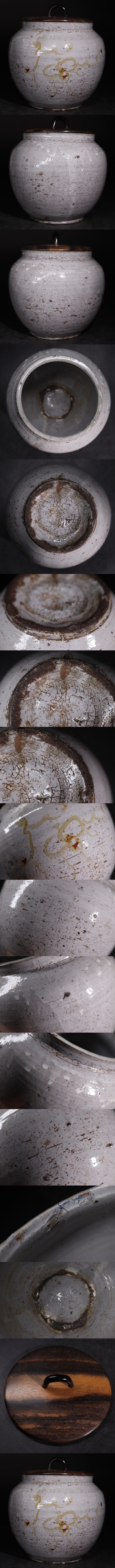 | 時代 白 刷毛目 粉引 水指 黒柿 蓋 / 李朝 朝鮮 茶器 煎茶道具 煎茶飾 検索: 会寧 鶏龍山 .G3887 |