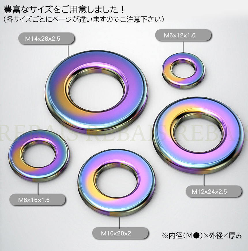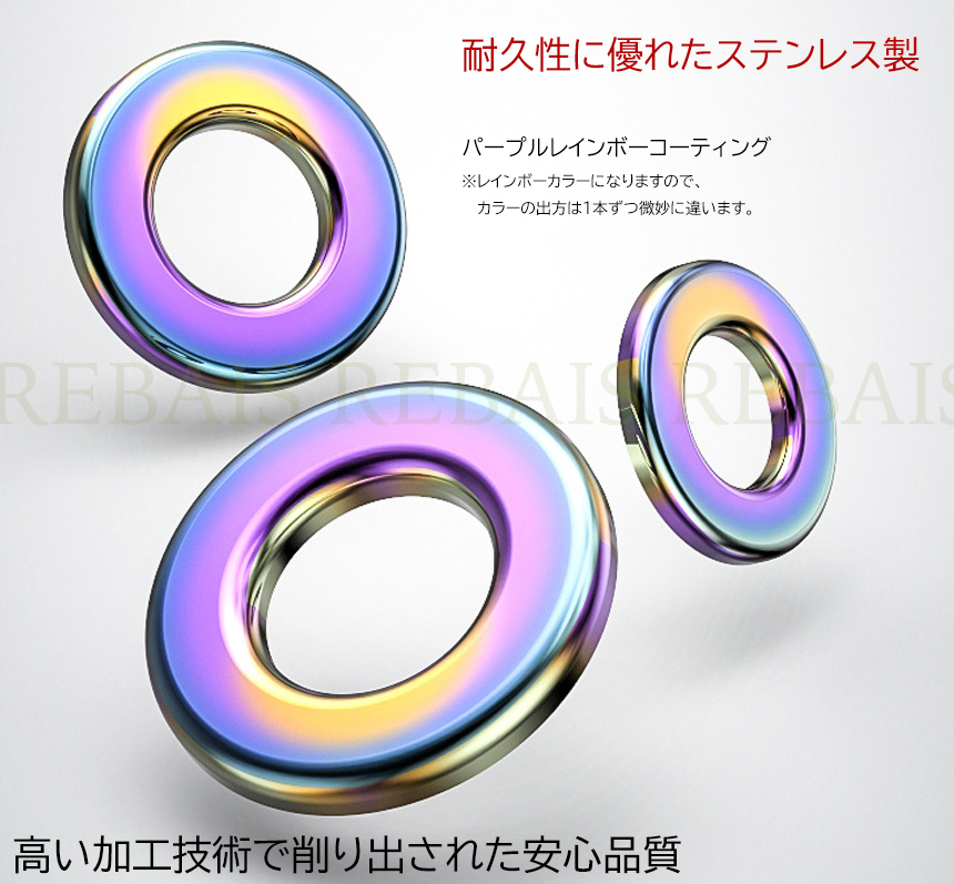 ステンレス 平ワッシャー M6×12×1.6 サイズ 10枚セットパープルレインボーカラーさりげないお洒落カスタムに!とはいえ結構主張します♪既存のワッシャーとと変える(または新規で入れる)だけなのであっという間にカスタムでき、コスパも最強!錆びにくいステンレスで実益も兼ねております!バイク、車はもちろん、様々な機械、インテリアにも使えますのでアイディア次第で用途は無限でございます♪| 出价者 | 信用 | 价格 | 时间 |