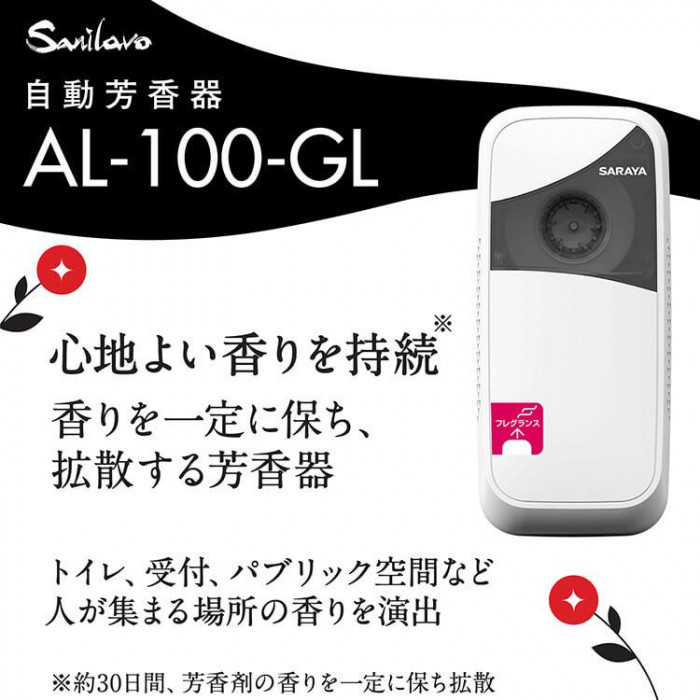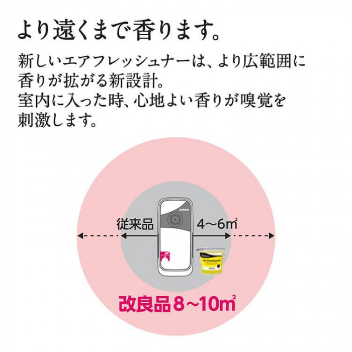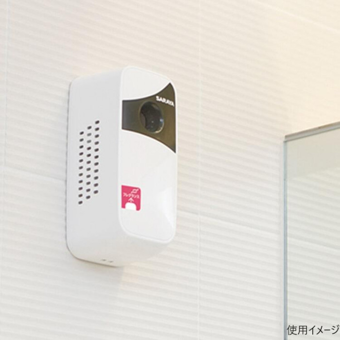 | トイレ、受付、パブリック空間など人が集まる場所に香りを演出。用途がわかるピクトラベルや、いたずら防止のカギ付きです。動作中と電池切れ予告、電池切れをLEDでお知らせします。徐々に弱まる芳香剤の香りに対して、時間経過とともに送風時間を長くして香りの拡散量を増やし、香りを一定に保つよう設計されています。より広範囲に香りが拡がる新設計。取り換え期間を長くし、メンテナンス性と経済性を向上させました。 ※電池、芳香剤は別売りです。 ※壁面に両面テープで固定する場合は必ず壁面接着後24時間放置し、十分に固定されたのを確認してから電池・芳香剤を補充してください。 ※取扱説明書をよくお読みのうえ、正しくご使用ください。 |
