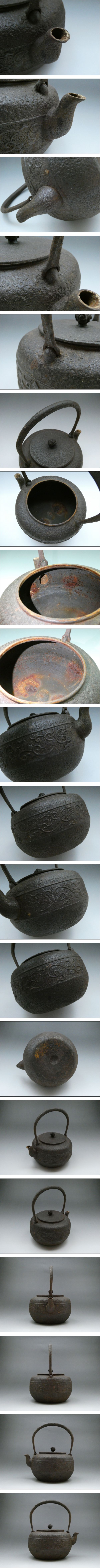 | ★商品★ ・唐草文鉄瓶 ★寸法★ ・高さ (約)21cm ※提手を含む ・胴径 (約)16.5cm ※注ぎ口を含まず ・口径 (約)9.5cm ★重量★ ・(約)1520g ★材質★ ・鉄製 ★状態★ ・経年による傷、汚れ、変色、錆などが見られます。 ・1時間ほど水を溜めて放置しましたが、水漏れ箇所はございません。 ※備考※ 商品状態に関しては、あくまでも当方の見立てとなります。 程度には個人差がございますので、商品画像を良くご覧になられた上での入札お待ちしております。 |
