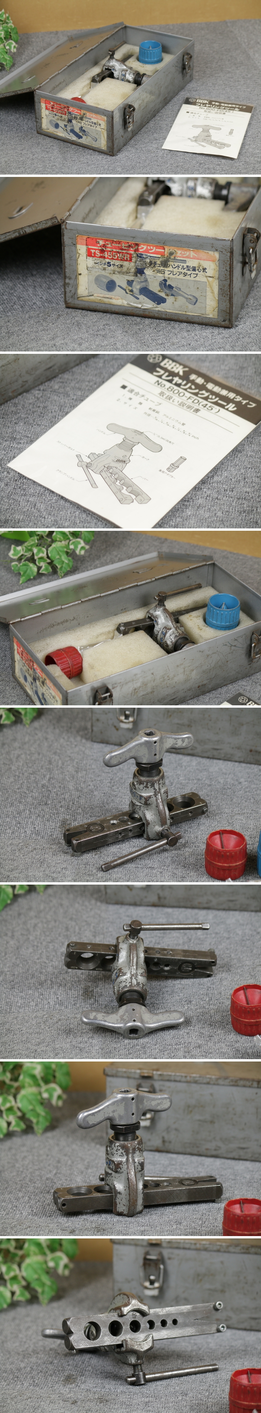 | フレヤリングツール 800-F 工具 [欠品あり] 外寸:高140×横190×奥90mm 中古品 傷汚れあり。本体のレバーは廻ります。 パイプカッターは欠品です。 出品の商品は背景のものを除く画像のもので全てです。 サイズは約です、多少の誤差はご容赦下さい。 | ||