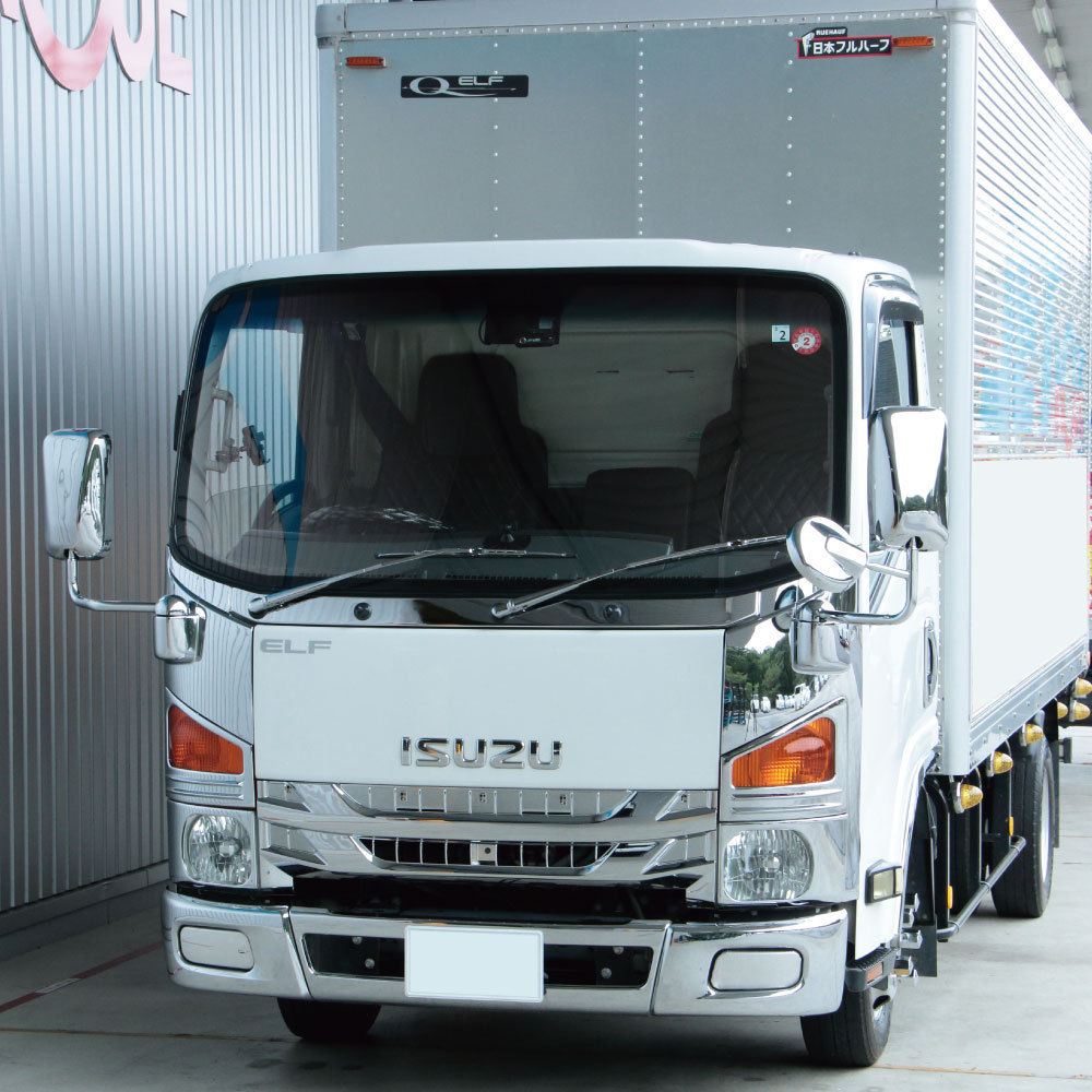 | 商品紹介 | 07エルフ用マイナーチェンジ後仕様のフロントグリル。 前期型にも後期型にも使用できる共用タイプ。オールメッキタイプで存在感UP! 07エルフハイキャブ標準 H19.1~R5.2 ■メッキ ■前期/後期共用 ■交換式 |