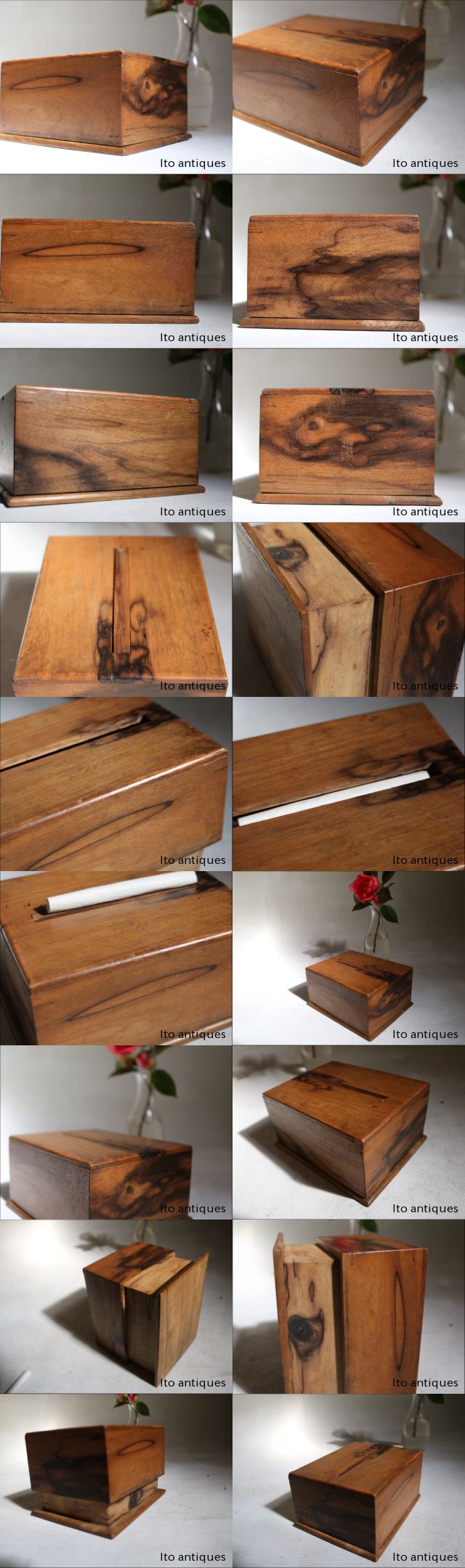 | 商品説明 | 《商品説明》 古い小箱、山形県庄内地方総黒柿製煙草ケースです 時代は大正~昭和の物です このお品は珍品で中に煙草を入れ外枠を上に上げ下げ下すと煙草が1本せりあがってくる遊び心ある面白いお品です 材は全て黒柿で作られた総黒柿製です 塗りは拭き漆で黒柿本来の黄色と黒のコントラストがくっきりとして高級感ある仕上がりです 綺麗に磨きアンティーク用ワックスにて仕上げ中もクリーニング済ですので直ぐにご使用出来る状態です 黒柿製のからくり煙草入れ、お勧めです 《サイズ》 約14㎝(横)×約7,2㎝(高さ)×約11,3㎝(奥行) |