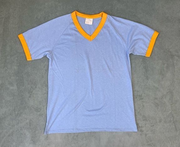 | 説明 | アメリカ・メリーランド州の老舗アスレチックウエアブランド"MERRYGARDEN ATHLETIC WEAR" 90's VネックTシャツです。 ノースカロライナブルーボディにサフラン系オレンジカラーのアメリカ カレッジぽい色合い アメリカ製 |