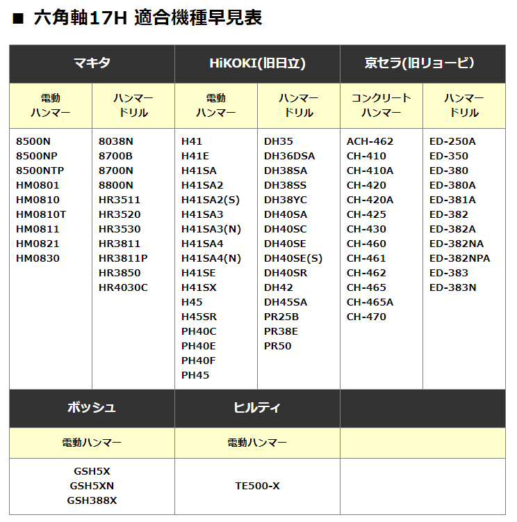 マキタ・HiKOKI(旧日立)・京セラ(旧リョービ)