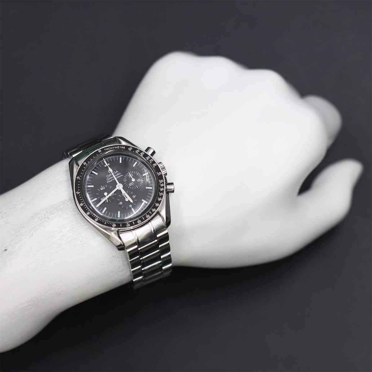 | 商品概要 | 1957年に誕生した人気モデル『スピードマスター・プロフェッショナル』クロノグラフ腕時計です。1969年、人類初の月面着陸に立ち会うという輝かしい名誉のあるモデルで、オメガ手巻キャリバー1863を搭載!裏蓋シースルーバックに強化プラスチック風防を使用したこだわりの仕様と飽きのこないデザインです♪ |