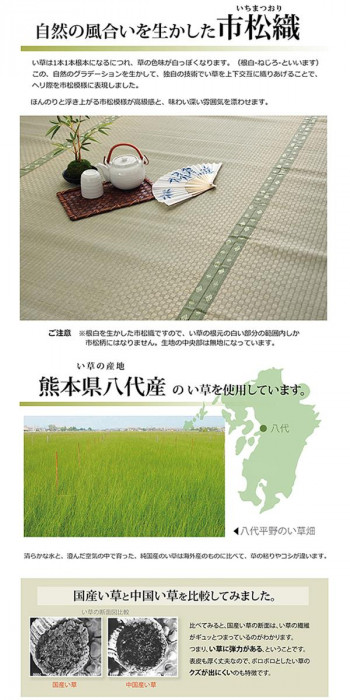| 素材・材質 | い草(熊本県八代産) ※市松織 ヘリ:ポリプロピレン、ポリエチレン |