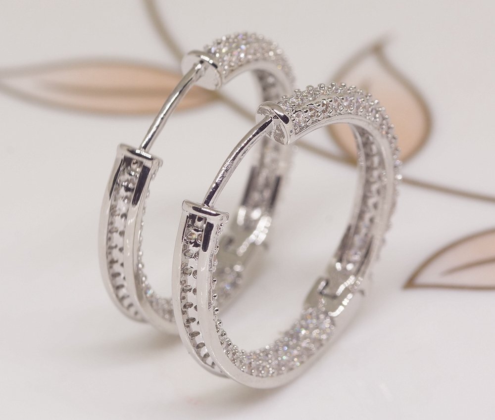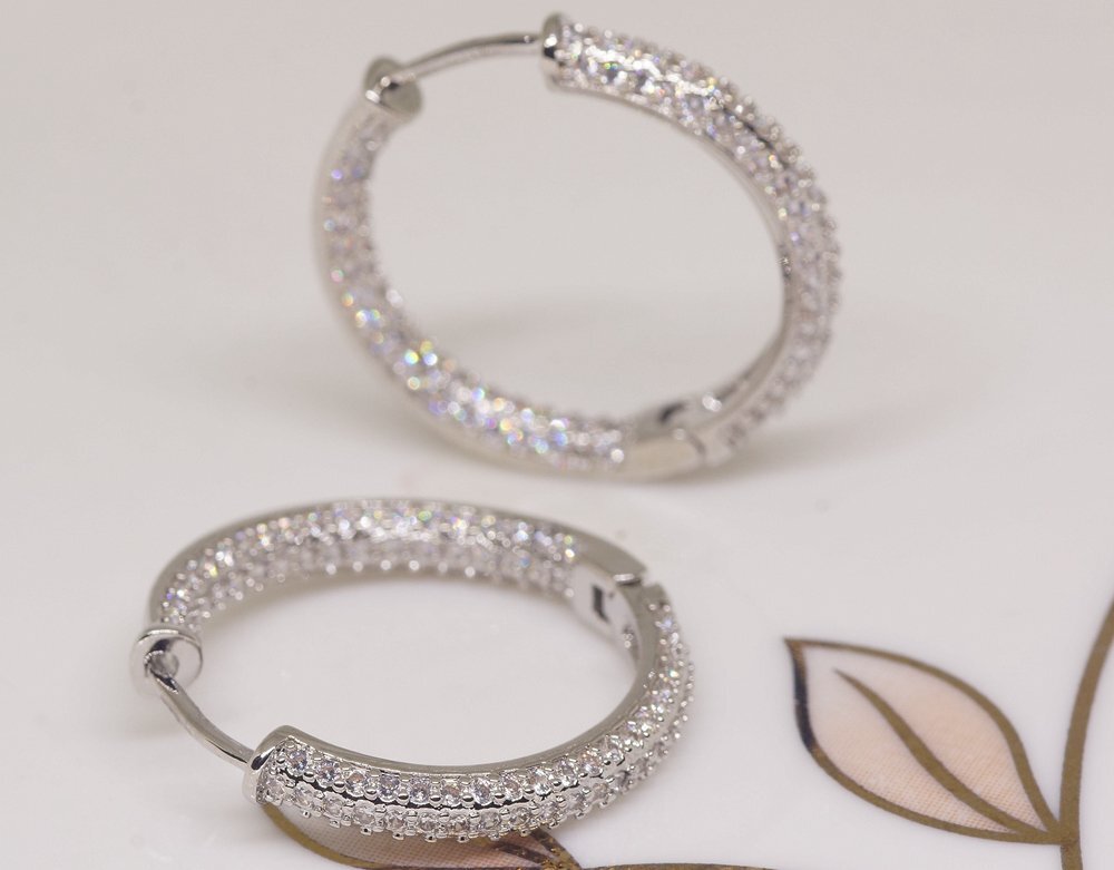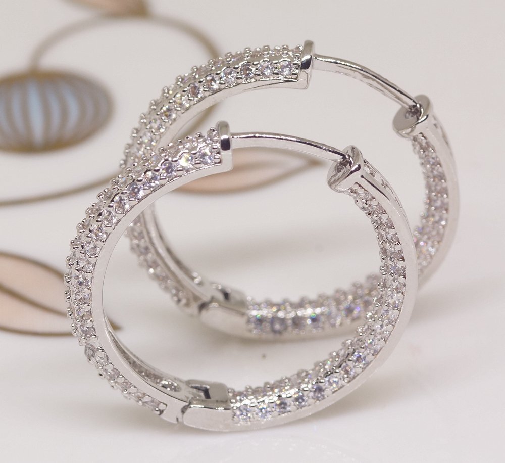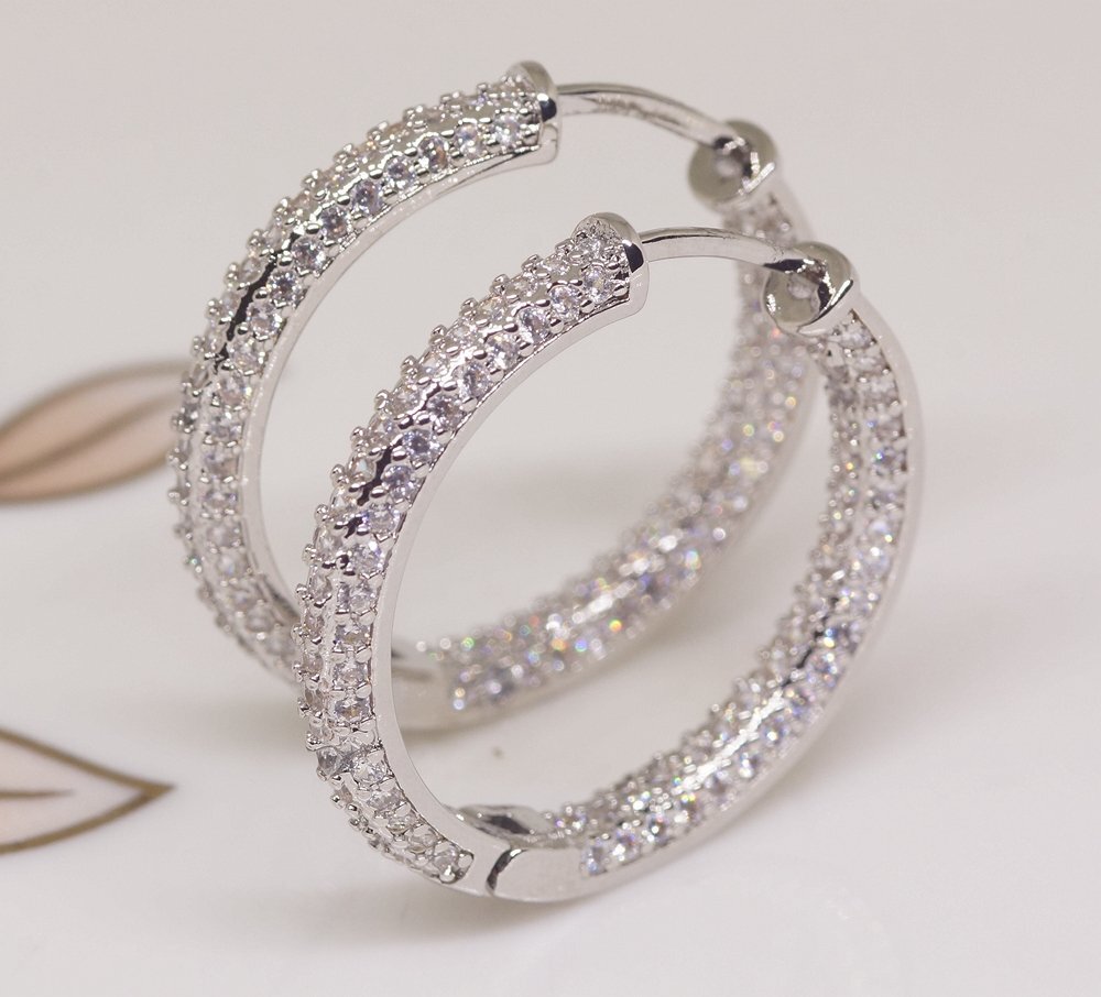 18K RGP プラチナ ダイヤ CZ 直径約22mm リング ピアス yp5040 |