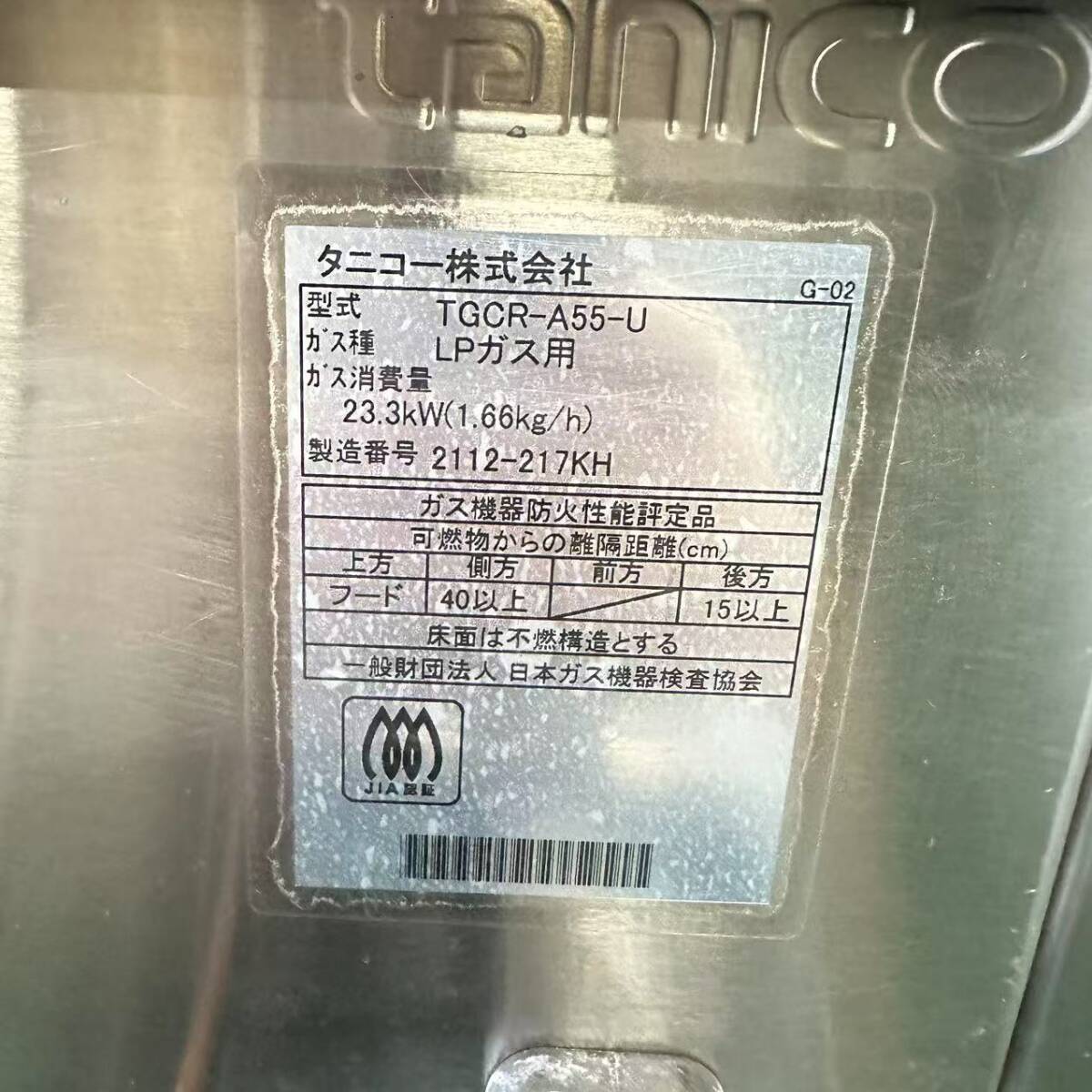 商品名 | 【中古品】番号A557◆タニコー 中華レンジ LPガス TGCR-A55-U 21年 点検済み☆ 【厨房市場平野店】 |
