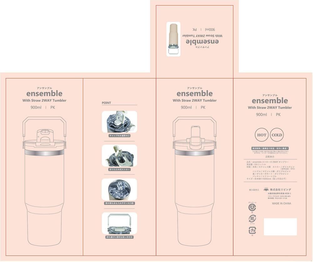 リビング ensemble ストロー付き 2WAYタンブラー ピンク 900mlその他 水筒・水筒関連商品 はこちら(←ここをクリック)