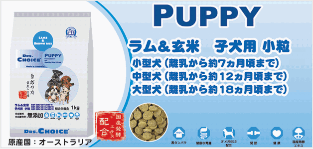 プレミアムドッグフード(子犬用 パピー 小粒 ラム&玄米 小型犬……離乳から 約7ヶ月頃まで)