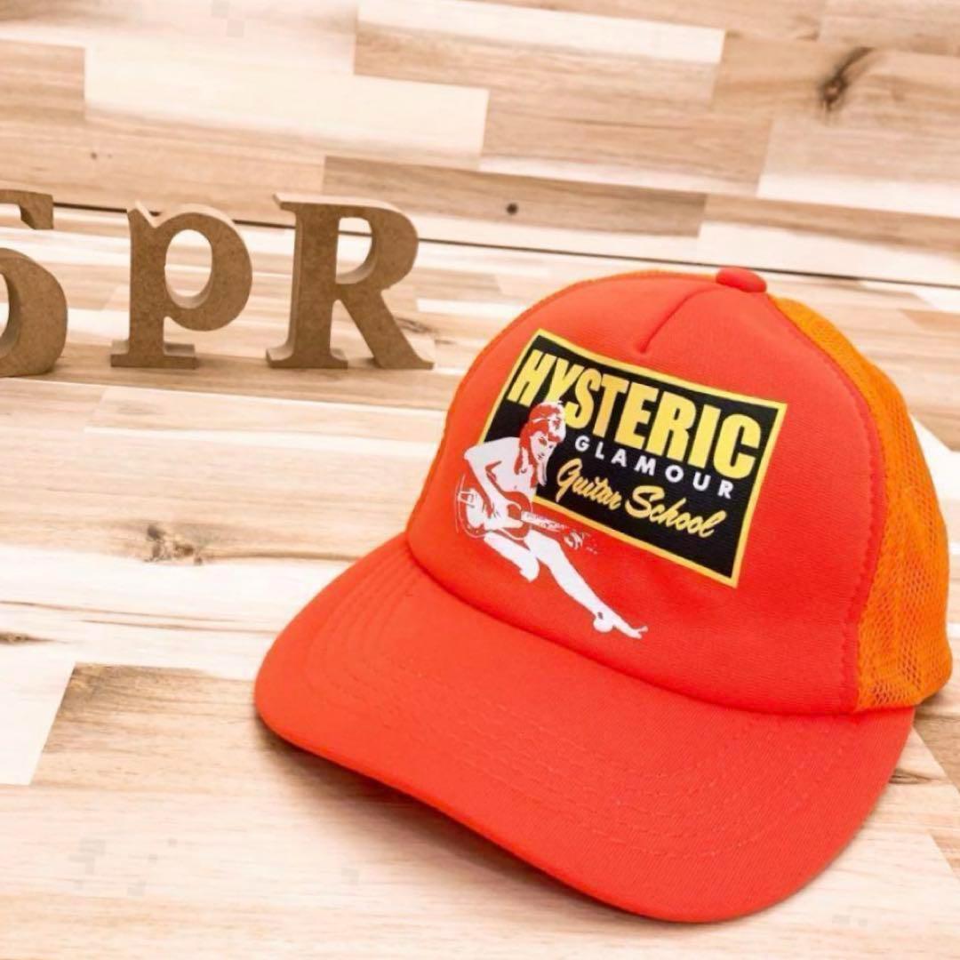 鮮やかなオレンジにアコースティックギターを持った女性がプリントされ、ヒスらしいレトロで個性的な雰囲気を放つ仕上がり。通気性の良いメッシュ仕様と深めのシルエットが軽やかさとタフさを両立させ、ライダーやアメリカンスタイルにも溶け込む存在感を演出してくれるHYSTERIC GLAMOURのキャップです。