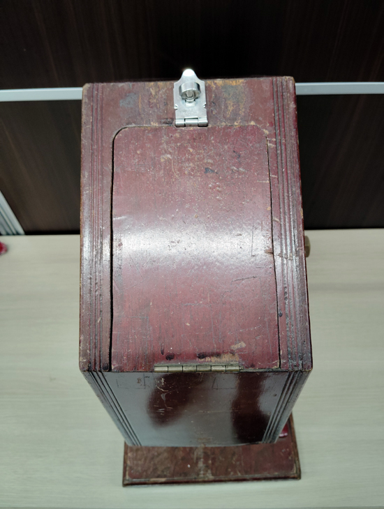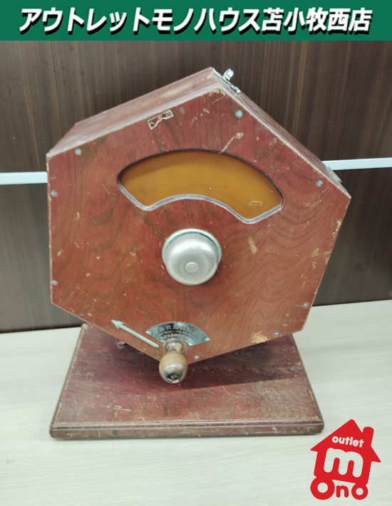 現状品 当時物 新井式回転抽籤器 くじ引き 福引き ガラポン 木製 ガラガラ 抽選機 ブラウン 置物 オブジェ 苫小牧西店