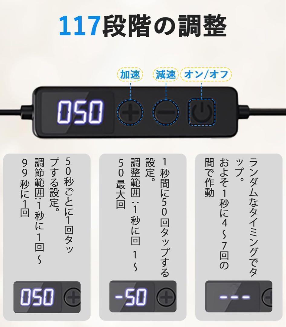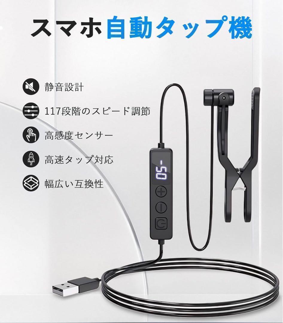自動タップ機 連打機 スマホ自動タップ機 オートクリッカー 無音設計 117段階タップ速度 USB給電 高速連打 TikTok/ゲーム周回/推し活/ライブ配信/いいね/ハート iPhone/iPad/Android対応 記憶機能付き コンパクト設計 日本語説明書付き (1セット) 117段階クリック速度・細かく調整可能】本連打機は 117種類のクリック速度 に対応。ボタン一つで簡単に加速・減速が調整でき、設定範囲は 99秒に1回~1秒に50回 まで自由自在。ゲームの周回やライブ配信のいいね連打、チケット購入など、幅広い用途に対応します。 【USB給電式・コンパクトで持ち運び便利】内蔵バッテリー不要の USB給電式 なので、充電切れの心配がなく長時間の使用も安心。さらに 軽量&コンパクト設計 で、カバンやポケットに収納しやすく、旅行や外出先でも手軽に使えます。 【ランダムモード搭載・AI検知回避に役立つ】ランダムモード(1秒に4~7回)で、人の手による自然なタップを再現。システムに検知されにくい仕様で、さまざまなシーンで快適に使用可能。さらに 記憶機能付き なので、一度設定すれば毎回調整する手間も不要です。 【静音設計・画面にやさしいタップ】レイマッピングクリック技術を採用し、機械的な動作ではなく 静音タップ を実現。画面を傷つけにくく、クリック音も発生しないため、夜間や静かな環境でも周囲を気にせず使用できます。 【多用途対応・幅広い互換性】ゲームの周回・ライブ配信のいいね連打・チケットや商品の高速購入 など、さまざまな用途に対応!さらに、スマートフォンやタブレットなどの各種タッチパネル機器に対応 しており、1台で幅広いデバイスに使用可能です。