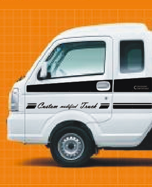 | ※スズキスーパーキャリィ DA16T サイド 一体型ライン サイドシール デカール ブラック黒 シルバー 艶あり光沢カーボンカラー 4種類選択 前後左右セット 各4カラー 貼り付け用 へら付き | |