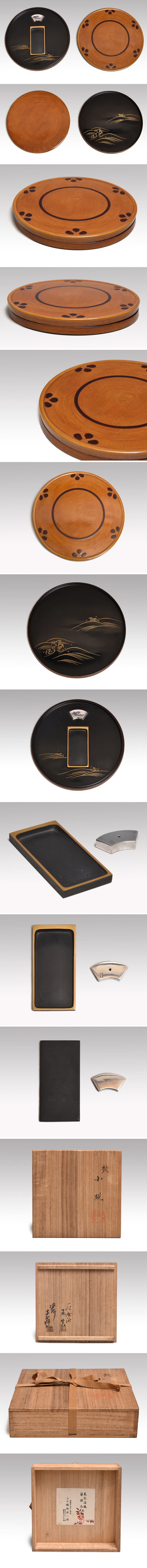鼓小硯 蒔絵師 三木玉真 塗師 表悦 美濃屋監製 共箱 |