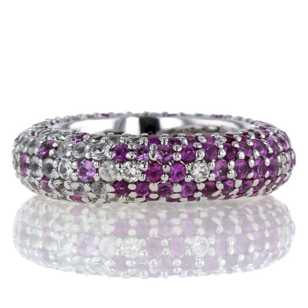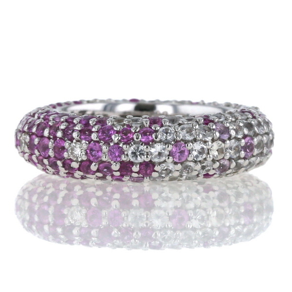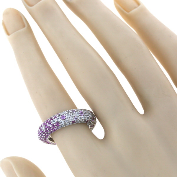 | 商品紹介 | ホワイトゴールドで作られたリングです。 小粒のダイヤモンドとピンクサファイアでグラデーションが描かれた、美しいデザインのジュエリーです。 |