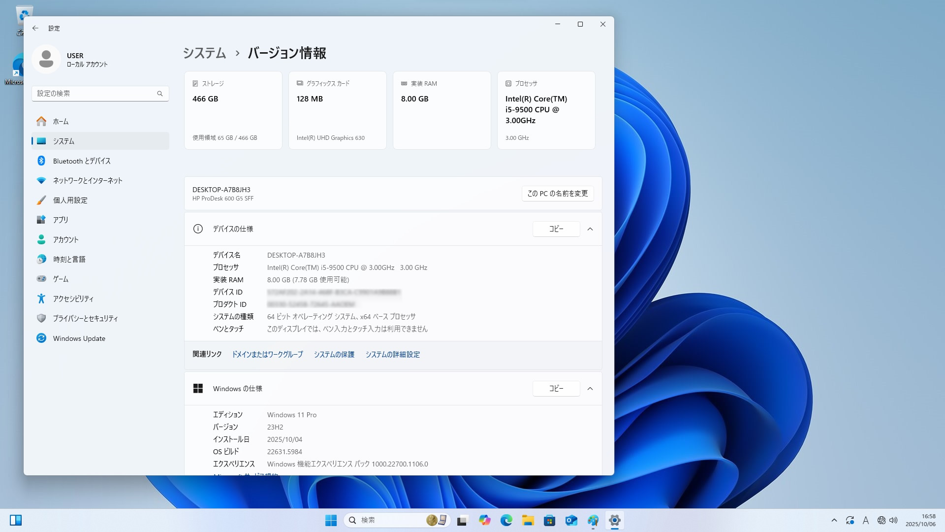 ・商品の状態 | ★HPのクラウド回復クライアントソフトを使用してリカバリをダウンロードし、Windows10 Pro 64bitでリカバリーしています。 ★Officeはありません。 ★OSのバージョンをWindows11 Pro 64bit 23H2にアップデートしています。 ★BIOSの表示確認済みです。 ★USB、LAN、USB-C、RGB、DisplayPortの動作確認済みです。 ★CD、DVDの読み込み確認済です。書き込みは未確認です。コピーしたメディアなどメディアによって読み込まない場合もあります。 ★イヤホンジャック、PC AUDIOケーブルの挿し口等、上記以外の動作は全て未確認です。 ★メモリー、HDDはチェックツールによる動作確認はしておりません。 ★分解しての内部チェックは行っておりません。 ★内部はエアーをかけて埃などは取り除いています。 ★フロントパネルUSB端子周りに細い傷、角に小さな傷があります。(写真17枚目) ★右側側面前方に細かな傷、擦れた傷があります。(写真17枚目) ★細かい傷や汚れなどはあります。 ★その他のデバイスについてもすべて未チェックです。 ★すべてを完全にチェックできていません、確認できている範囲での出品となります。 ★写真に写っている状態でのお渡しとなります。 簡易メンテでのお渡しです ※中古品ですので、経年なりの傷や使用感がございます。 神経質な方のご入札はご遠慮下さい。予めご了承お願いします。 | ||||||||||||||||||||||||