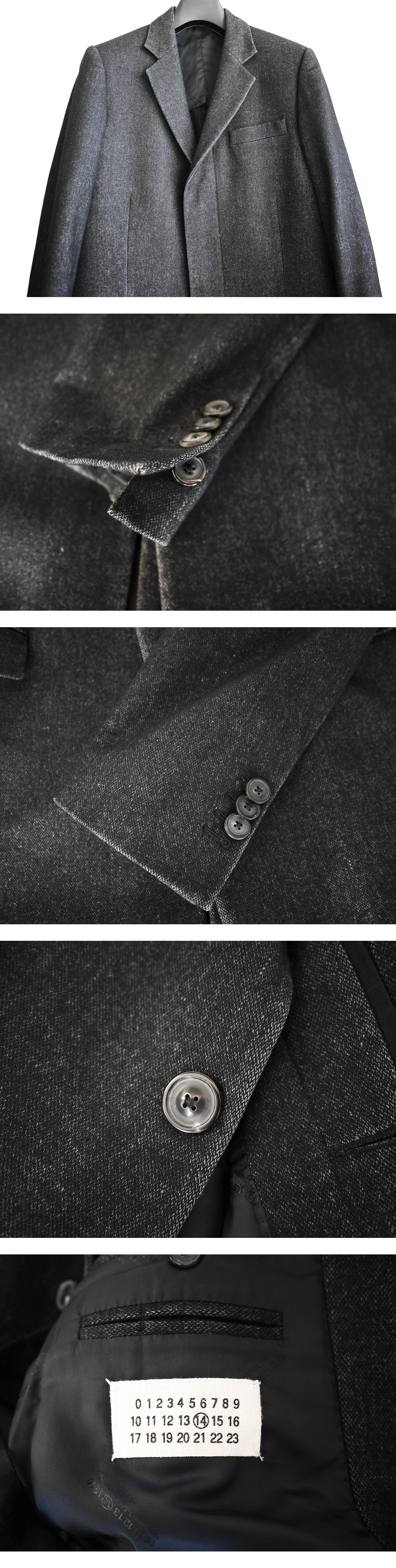 表情豊かなウールメルトンを採用し、しっかりと厚みがあり、着心地、デザイン性を兼ねそろえたマルジェラらしい外連味のない素材感です。マルジェラならではの嫌みのないコンパクトなサイジングと無駄をそぎ落としたミニマルなデザインは、時代を選ばず、軽く羽織るだけで品格溢れるスタイリングを実現いたします。