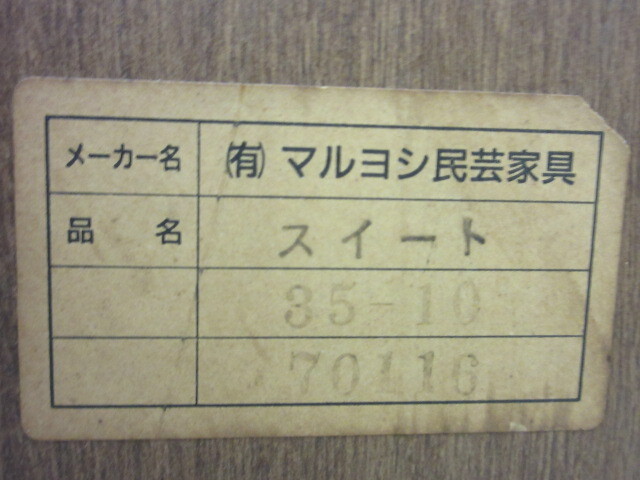 | 商品説明 | マルヨシ民芸 ハイチェスト 10段チェスト。 USEDですのでご理解の上ご入札をお願いします。 大きな目立ったダメージは見受けられません。 引出し2,3,4段目に小さな打痕があります。 (画像でご確認ください) その他、経年の小キズ、スレキズは有りますのでご承知おき下さい。 サイズ : 約W35×D43×H141センチ。 発送は「家財おまかせ便」のみのお取り扱いです。 着払いはできません。 神奈川県より「C」ランクでの発送です。 送料はhttps://form.008008.jp/mitumori/PKZI1100Action_doInit.actionでご確認ください。 一部配送不可の地域がございます。こちらでご確認ください。 送り先のお電話番号をお知らせいただく必要があります。 「家財おまかせ便」は電話番号がないと受付けてもらえません。 神奈川県からの発送予定です。 |