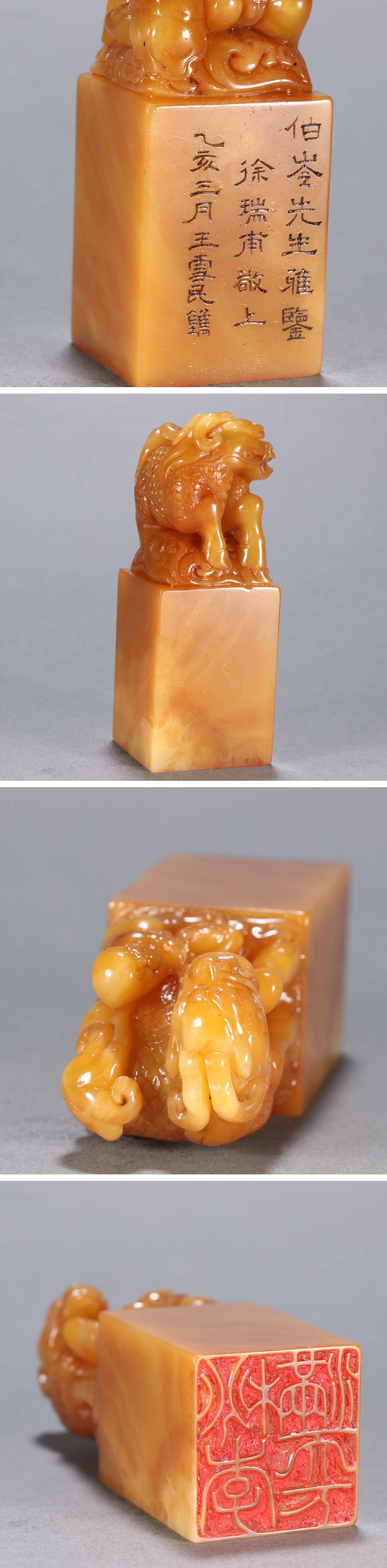 【清】某有名オークション購入 清時代 在銘 唐獅子鈕印章 古置物 古擺件 古美術 時代コレクション7L10-VF12
