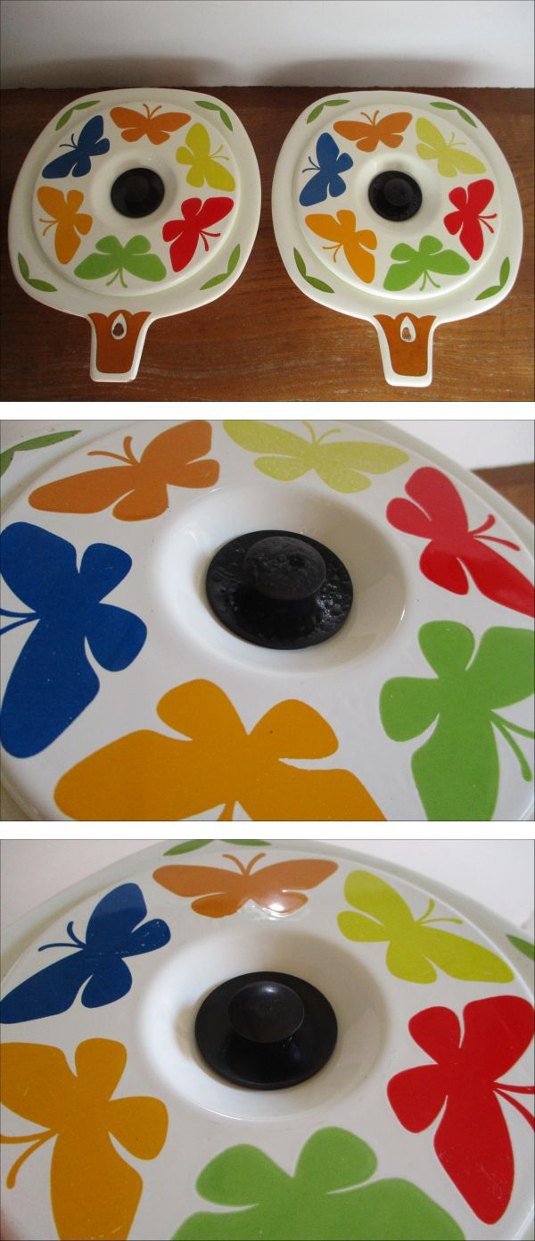 【昭和レトロ】アンティーク ホーロー 琺瑯鍋 14cmサイズ 片手鍋 2個セット キッチン雑貨 ヴィンテージ 蝶々柄 ※取っ手なし グラタン皿 | |||