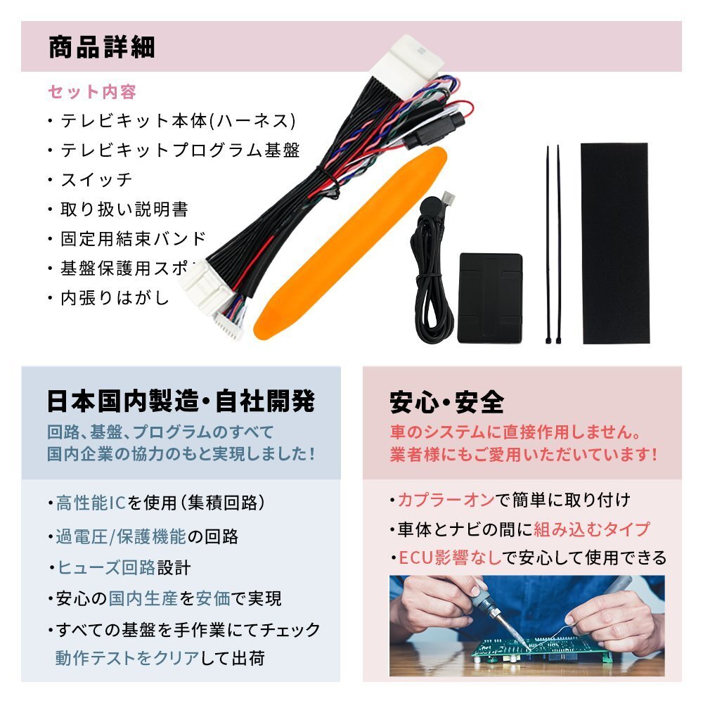 ![]() ![]() ■スイッチひとつでON/OFF切り替え リモコンのスイッチをカチッと押すだけで、 簡単にテレビ視聴モードのON/OFFを切り替えることが出来ます。 OFFモードでもLEDは薄っすら光っているので暗闇での操作も◎ 【OFF/デフォルトモード】 テレビキャンセラーが 動作していない状態。 走行中のテレビの視聴は不可。 LEDは薄っすら赤色に点灯し、 ONモードからの切り替え時には 「ピッ」と1回音が鳴ります。 【ON/テレビ視聴モード】 テレビキャンセラーが 動作している状態。 走行中のテレビの視聴が可能に! LEDは濃い赤色に点灯し、 OFFモードからの切り替え時には 「ピピッ」と2回音が鳴ります。 ■適合車種 ・アトレー ・タフト ・タント ・トール ・ハイゼット ・ムーブキャンバス ・ロッキー ・ライズ ・ルーミー ・シフォン ・レックス ■テレビキットについて 当製品は走行中に助手席、後部座席の方の利用を目的として販売しているカプラーキットです。 運転者が走行中にモニターを凝視することは安全運転義務違反になり、大変危険ですのでおやめください。 また、走行中のナビ操作も助手席の方が行ってください。 ※取り付けの際は万が一のため、バッテリーの接続を外すなどのうえ、作業してください。 お取り付けに関するサポートは行っておりませんのでご了承ください。 また、取り付けたことにより発生した事故・故障・損害は一切保証できませんので お取り付けは整備工場などで行い、あくまで自己責任のうちで取り付けを行ってください。 (作業ミスなどの責任は負いかねます) ![]() ![]() | |