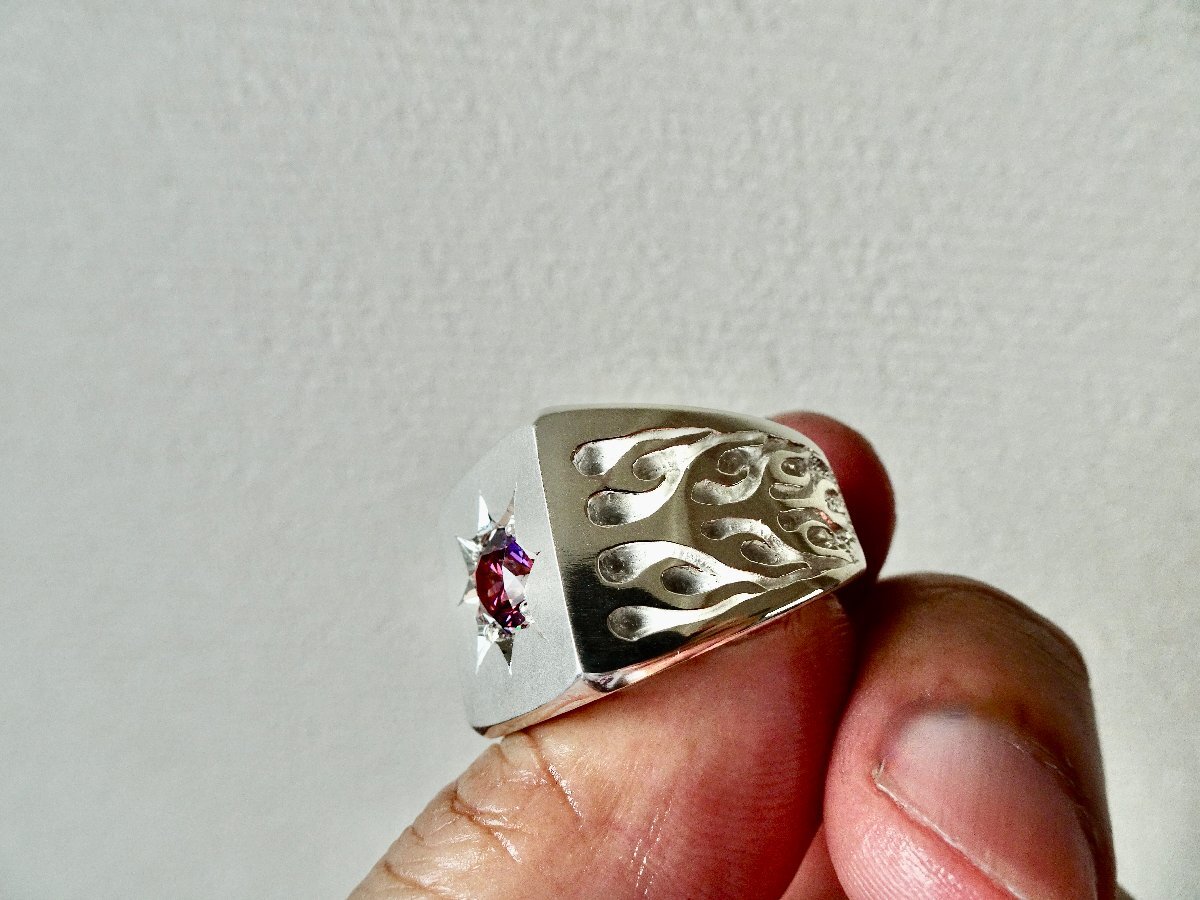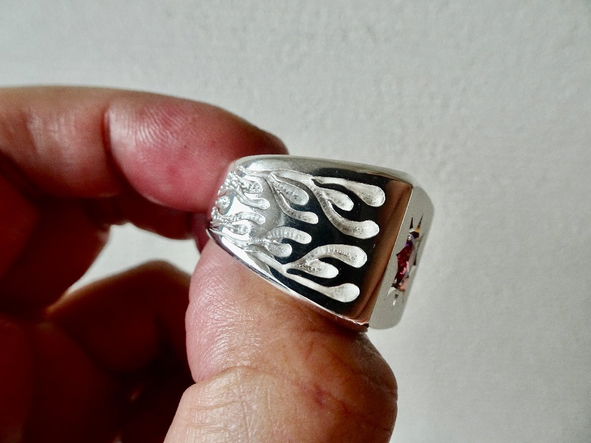 ごらん頂きありがとうございます。 オリジナルブランド 仁尾彫金『一つ星レッドジルコニア、ファイヤーパターン印台リング』を出品致します。 オリジナルのアクセサリーを自ら制作しています。今回、ファイヤーパターンモチーフをシンプルな印台リングの両サイドに造形致しました。印台面は艶消し処理をしています。そこに今回、星の輝きをイメージして7mmのレッドジルコニアを彫り留め致しました。リングの最大幅は1.9cm弱で、約35gとズッシリと重量感もあります。シルバーなので使い込むと独特の味が出てきます!!デザイン、制作を私自身で行っている為、今回、新品をご用意致します!! *こちらの作品につきまして14号から30号まで制作可能でございます。m(_ _)m シルバー925 約35g (silver刻印あり) ご質問等ございましたらお気軽にaerothmith@mac.comへご連絡下さい。m(_ _)m インスタにて仁尾彫金で制作状況を掲載していますのでお気軽にご登録をお願い致します。(^-^) 金プラチナにつきましてはフルオーダー制作も承っていますので、ご質問等ございましたらお気軽にaerothmith@mac.comへご連絡下さい。m(_ _)m 右上のストアニュースレター配信登録して頂きましたら新作出品時にニュースレターを配信していますので宜しくお願い致します。m(_ _)m その他も出品していますのでご覧下さい。m(_ _)m |