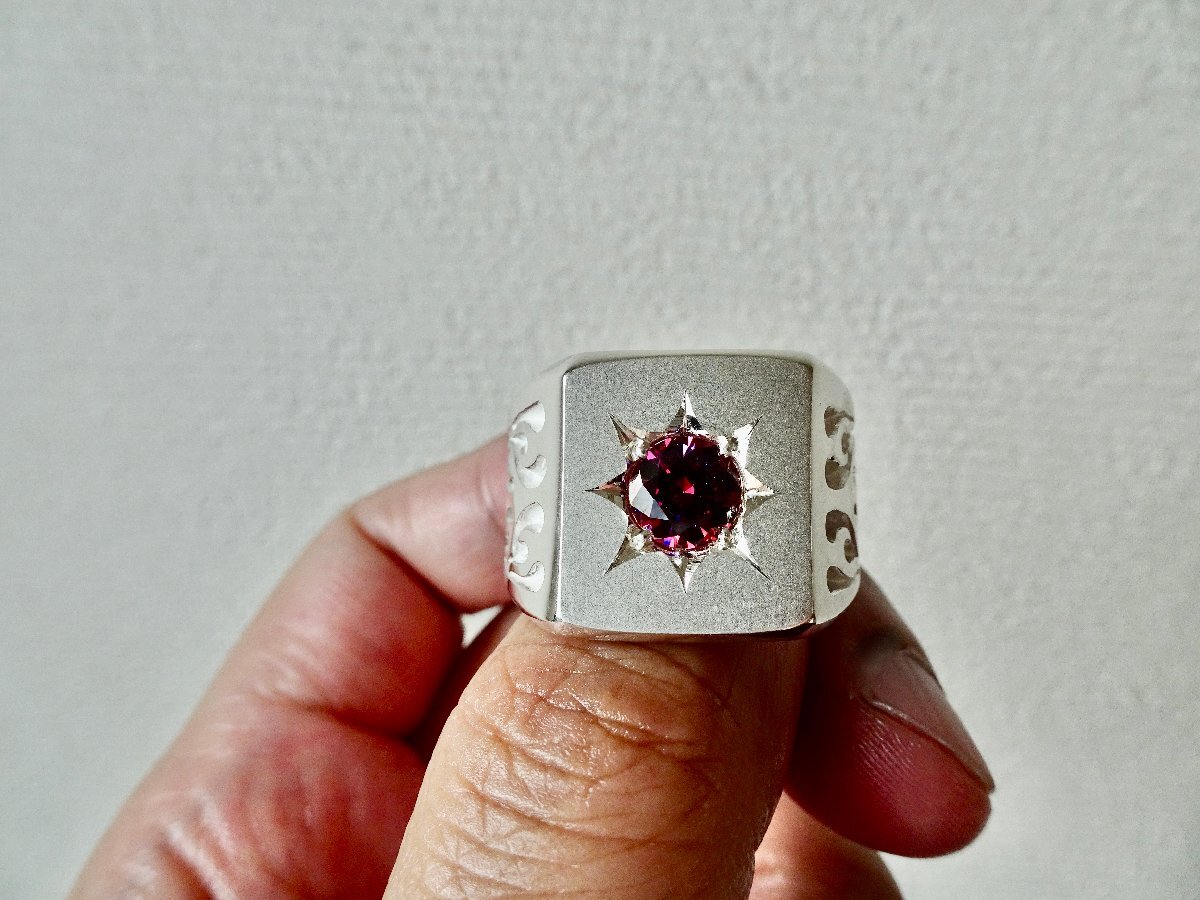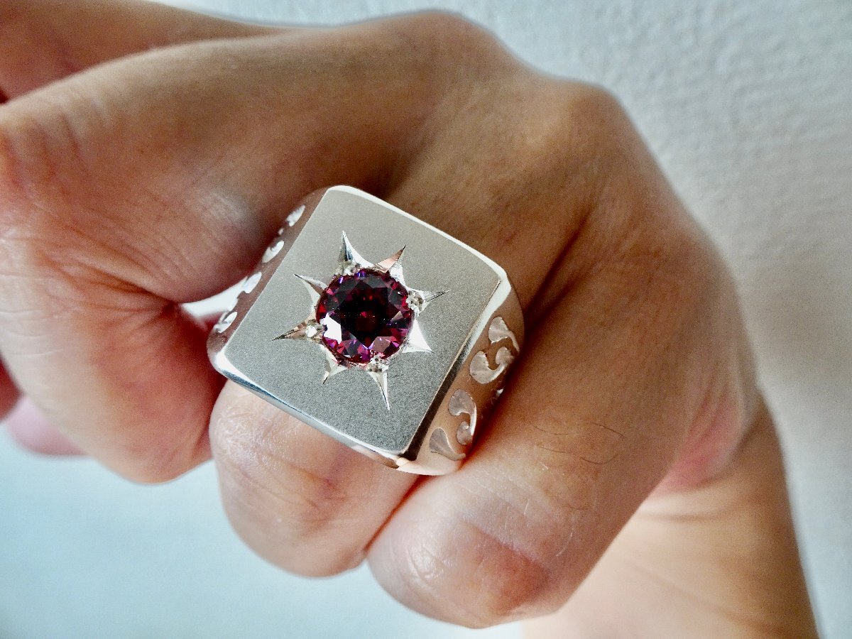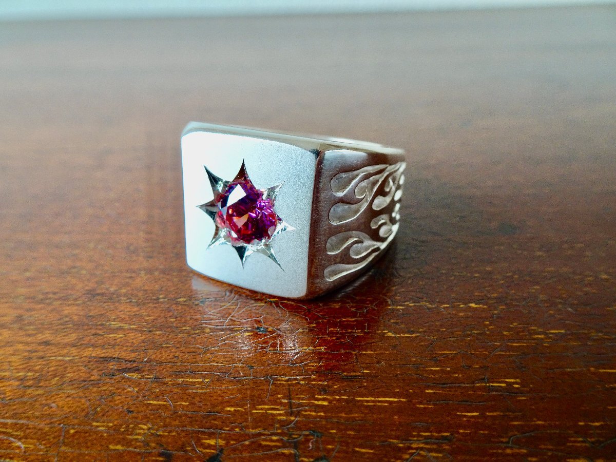 | ■ ■ 商品名: 『一つ星レッドジルコニア、ファイヤーパターン印台リング』 ■ ■ |