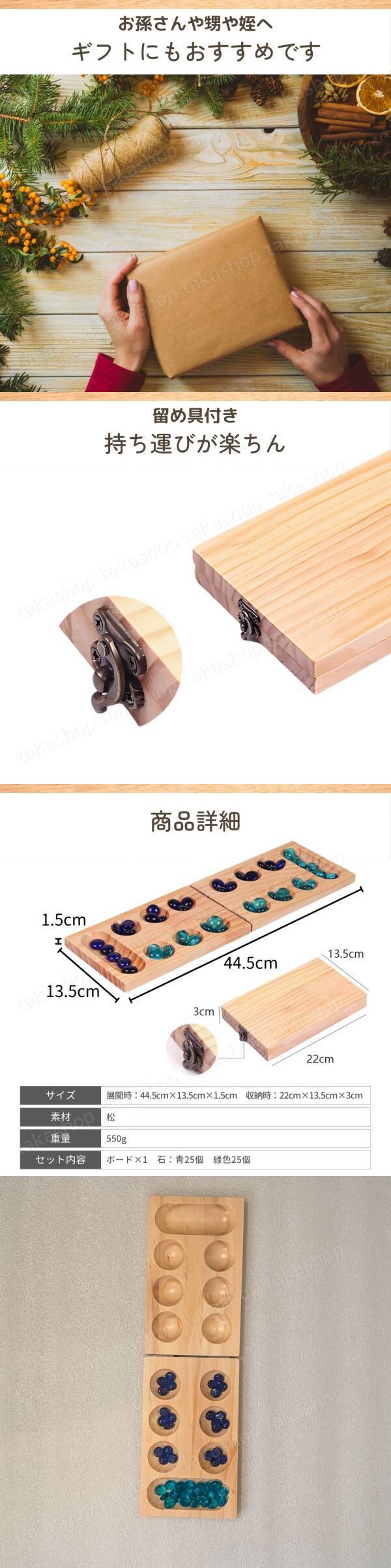 | 商品説明 | ご覧いただきありがとうございます! ●商品説明 世界中で人気の知育ゲーム『マンカラ』です! マンカラとは紀元前、古代エジプト東南アジアなどに伝わる世界最古の2人用ボードゲームです。 ●商品特徴 1.家族でできるボードゲーム 子どもから大人、おじいちゃん、おばあちゃんでもできファミリーで遊べる脳トレゲームです。 遊びながら頭の使い方が鍛えられるゲームで子どもの発育発達に効果的です。 シンプルなゲームルールで誰でもすぐに遊ぶことができます。 2.ちょうどよい石のサイズ カラフルな立体的な石がキレイです。 また、手に持つのにちょうど良いサイズで扱いやすいです。 3.天然木を使用 木製で折りたためます。 片付けや持運びに便利です。 4.ギフトにおすすめ お孫さんや甥や姪への誕生日プレゼントにも最適です。 学童、児童館、放課後等のデイサービス、高齢者の方へレクリエーション、介護施設などでもご使用いただけます。 家族で楽しみながら、お子様の思考力・集中力を高めることができる知育ゲーム・脳トレゲームです。 マンからは様々なルールがあり、遊び方、ルールはネットやyoutubeなどにありますのですぐに遊ぶことができます。 ●商品詳細 サイズ:展開時44.5cm×13.5cm×1.5cm 収納時:22cm×13.5cm×3cm 素材 :松 重量 :550g セット内容:ボード×1 石:青25個 緑色25個 ●発送について 【ゆうパケットポストで発送します】 発送日 :お支払い後1〜3日以内(平日) 到着目安:発送後2〜4日程度 ※商品はポストに投函されます ※遠方の方はもう少しかかる場合もございます 【配送方法の変更はできません】 ●お願い ・商品画像の転載や説明文のコピーはお止め下さい ※見つけたら通報しています ・ 海外製品のため、細かな汚れや傷がある場合があります。また、画像と実物の色合いが異なる場合がございますので、予めご了承ください 〇初期不良は対応しますので、何かあれば「評価前に」ご連絡下さい |