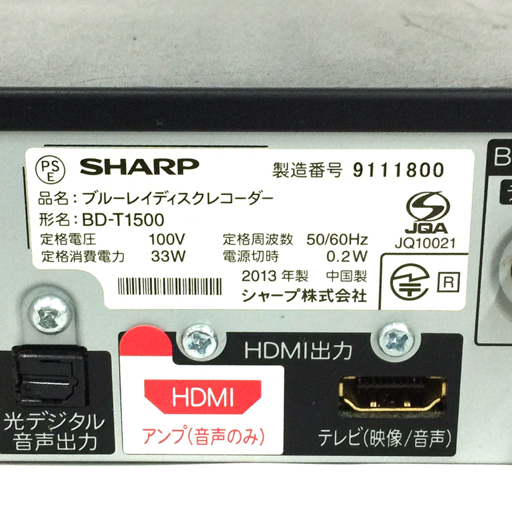 | SHARP BD-T1500 ブルーレイディスクレコーダー 動作確認済み 2013年製 |