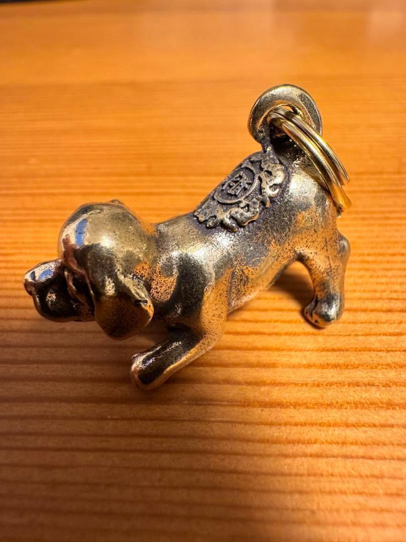 真鍮製の犬キーホルダー、ゴールド仕上げで背面に装飾あり。| 出价者 | 信用 | 价格 | 时间 |