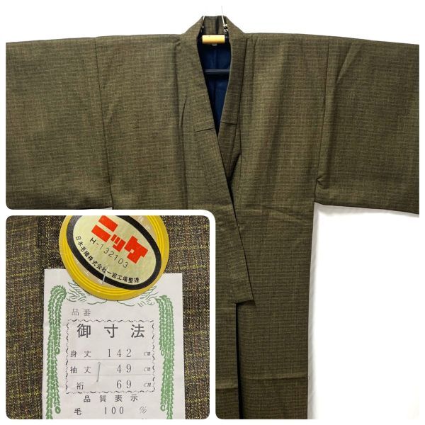 | 【J078】未使用 保管品 紳士物 丹前 どてら ニッケ整理加工 毛 100% 身丈142cm 和装 b | ||