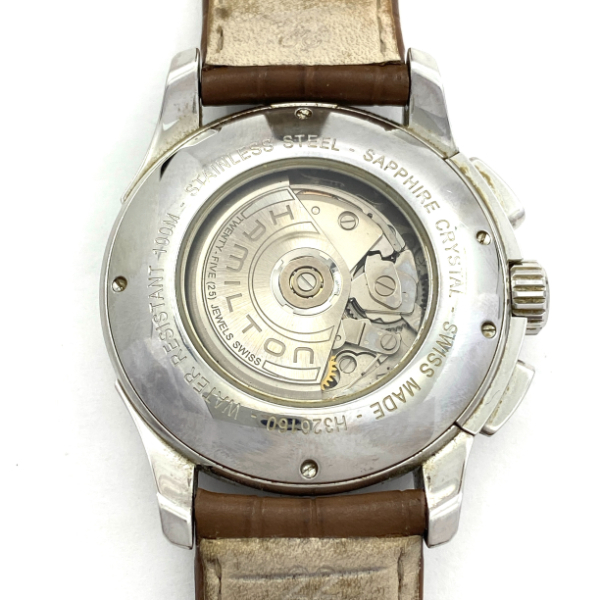 | ケース、リューズ表面小傷多数、革ベルト裏側汗染み汚れ |