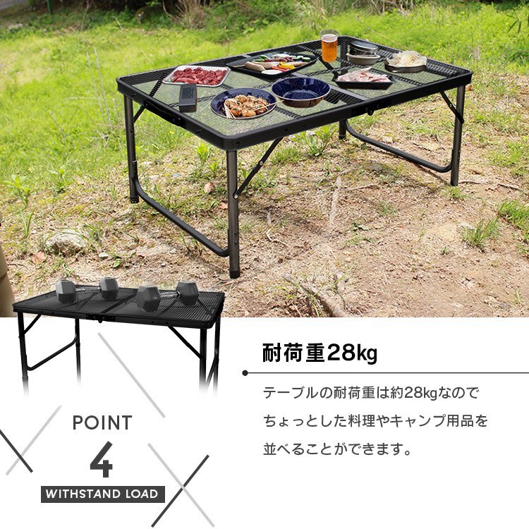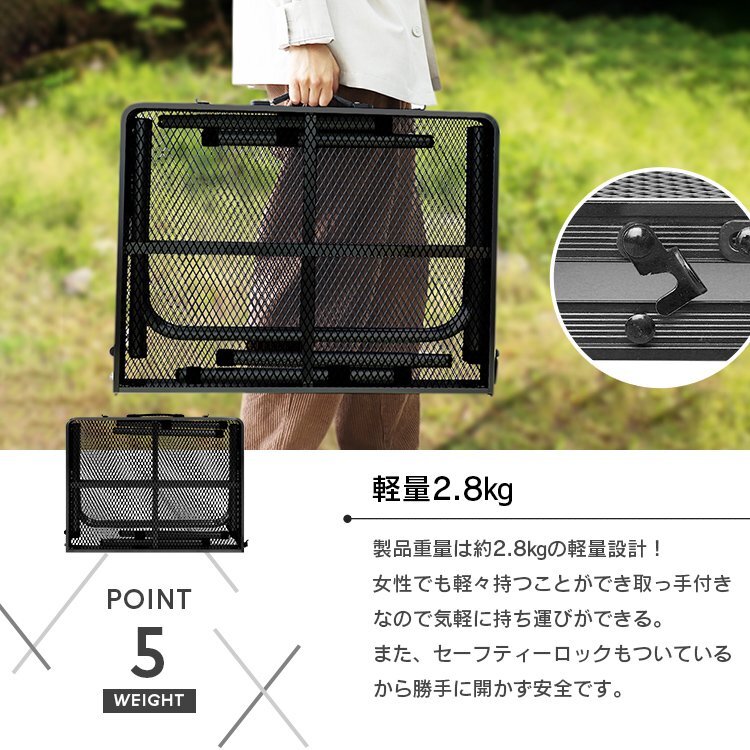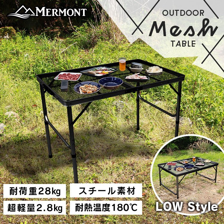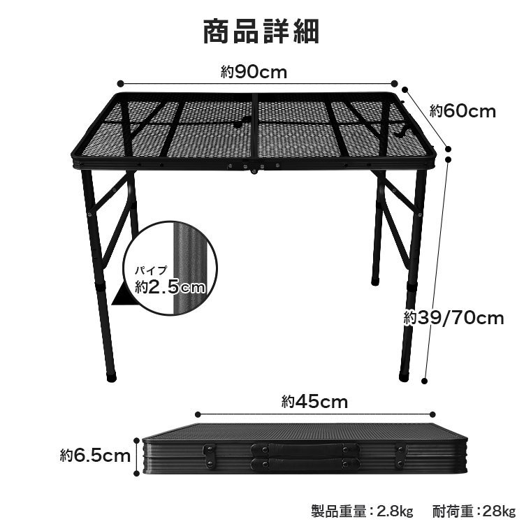 丈夫なスチール素材を使用したメッシュテーブルです! 耐熱温度180℃なので、熱い鉄板やスキレットをそのまま置けます!! テーブル高さは2段階調整可能! 用途に合わせてロースタイル、ハイスタイルと使い分けできます。 折り畳み収納&軽量2.8キロなので持ち運びが楽々♪ さらにセーフティーロック付きで安全。 フルメッシュ天板なので汚れても丸ごと水洗い可能! お手入れ簡単です☆ ■商品コード:A61MS003 ■商品仕様 カラー:ブラック サイズ(使用時):(約)幅90cm×奥行60cm×高さ39/70cm(2段階調整可能) サイズ(収納時):(約)幅45cm×厚さ6.5cm 重量:(約)2.8kg 耐荷重:(約)28kg 材質:スチール その他:折りたたみ、耐熱温度180℃ ■注意事項 ・海外製品で簡易梱包での輸入のため風防に擦れや多少の小キズなどがある場合がございますが、 商品自体には問題ありませんのでご了承下さい。 ・商品は、モニターによって色合いが異なって見える場合があります。 ・仕様・デザインは改良のため予告なく変更することがあります。 ■保障期間 7日間 ※商品到着後7日以内の初期不良・破損のみご対応させていただきます。 【新品未使用品です】 |