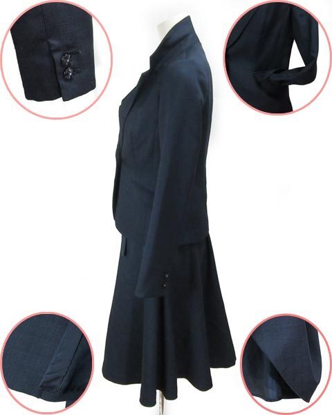 | 実寸サイズ | ジャケット着丈50cm 袖丈56cm 肩幅35cm バスト86cm ウエスト78cm スカートウエスト61cm |