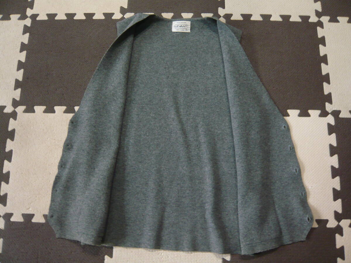 LEVANT グレーベスト 毛80・アクリル20% サイズ表記はM 実寸は肩幅34、身幅46、着丈61センチ位です。多少の毛玉があります。他に特筆すべき問題点はないと思いますが入手後年数が経過していますのでご理解の上入札お願いします。気になる方は入札ご遠慮ください。ノークレームノーリターンでお願いします。