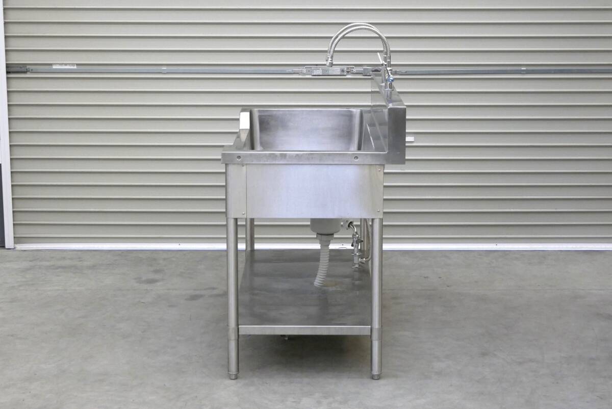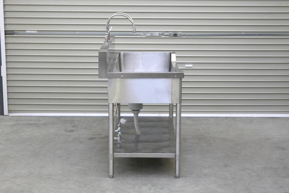 | この度は、ご覧いただきありがとうございます。 zyt2564ジ マルゼン ステンレス製 業務用舟型シンク BSF1-126 幅120cm 奥行60cm バックガード付 単水栓2口付属 現状品『引取歓迎』71029-08 の投稿です。 --------------------------------------------------------------- 【お品物の詳細】 メーカー:マルゼン 商品名:ステンレス製 業務用舟型シンク 型式:BSF1-126 素材:ステンレス、他 サイズ: ※すべて素人採寸 / 脚アジャスタ式 全体:幅 120cm 奥行 60cm 高さ 114cm(アジャスタを縮めた際) バックガード上端までの高さ 93cm(アジャスタを縮めた際) シンクのフチ(周囲)までの高さ 78cm(アジャスタを縮めた際) シンクのフチ(手前)までの高さ 72cm(アジャスタを縮めた際) シンク内寸:幅 112cm 奥行 46cm 深さ(奥側) 20cm 付属品:なし ※画像の物が全てです。菊ゴムやシンク内に水を溜める排水栓はございません。 ※製品詳細に関しましては各サイトをご確認ください。 【 マルゼン 舟型シンク BSF1-126 承認図PDF 】 --------------------------------------------------------------- 【お品物の外観状態】 外観状態ランク:B...一般的な使用感があり、細かな傷や汚れがあるお品物 ****************************************** ▼注意事項御座います、必ずお読みください▼ ****************************************** こちらは当方がお譲りして頂いたお品物です。 前所有者の方の購入時期や使用頻度、保管方法等は不明なお品物となります。 こちらのお品物の外観状態と致しまして、目立った傷や汚れのお見受けできない中古のお品物かと思われます。 ユーズド品となりますので、水垢状の汚れ、擦れや磨き傷、小傷や小錆などがございます。 多少使用感はございますが、当方主観では比較的美品寄りのお品物と判断致しております。 当方でも簡易清掃は致しましたが、水垢状の汚れ、錆や黴などは除去しきれません。設備としての導入前には落札者様にて細部や内部の清掃/洗浄作業等を行っていただきますようお願い致します。 外観上目立った損傷はございませんが、当方では実際に水を溜める、排水するなどといった詳細な精査が行えておりません。万が一水漏れ等ございましたら、落札者様にて修繕の上ご利用をお願い致します。 尚、部品や付属品などの破損/欠損等に関しましては当方では精査できておりません。 実際の運用にあたり必要な部品類や消耗品の手配や交換、各種メンテナンス等につきましても落札者様にてお願い致します。 当方厨房機器や水道設備等の専門ではない為、見落としや写真に写し切れていない箇所等のある場合がございます。 ご不明な点がございましたら質問にてお問合せ下さい。尚、専門的な質問にはお答え致しかねます。 ご自身にて部品調達や修繕等可能な方、画像で判断できる方、ご理解ご了承いただける方の入札をお願い致します。 ★状態ランク★ N...新品・未使用・未開封品のお品物 S...数回使用した程度の美品のお品物 A... 目立った傷・汚れが余り感じられない程度の美品のお品物 B...一般的な使用感があり、細かな傷や汚れがあるお品物 C... 傷・汚れが目立つ状態のお品物 J... 故障・破損・破け等がある商品(ジャンク品) ※店頭でも併売しておりますので、多少コンディションに変化のある場合がございます。また、早期終了や入札の取り消しを行わせて頂く場合がございます。予めご了承ください。 ******************************************************************* 【発送方法・送料等】 ①『家財おまかせ便(電話番号必須)※旧ヤマトらくらく家財便』 ②『仙台市内(当方倉庫)でのお渡し』 ※配送料金が高額となりますので、引き取り(当方倉庫でのお渡し)を推奨しております。 - - - - - - - - - - - - - - - - - - - - - - - ①『家財おまかせ便(電話番号必須)※旧ヤマトらくらく家財便』 アートセッティングデリバリー株式会社の『家財おまかせ便』にて 【 Dランク(三辺合計300cmまで)】のサイズで発送させて頂きます。 ※集荷予約の際、お届け先の電話番号が必要となりますので、落札後、取引ナビにて電話番号をお知らせください。 [送料例] 宮城県→宮城県 11,270円 宮城県→東京都 11,930円 宮城県→大阪府 17,040円 宮城県→福岡県 21,980円 ※上記の例は2025年1月時点での金額となります。詳細は家財おまかせ便のサイトにてご確認ください。 上記以外の地域の詳しい送料につきましては、下記リンクをご確認ください。 ◆家財おまかせ便 料金検索◆ ※家財おまかせ便では、地域によって指定できる時間帯が異なります。対応可能地域でも加算料金が発生する場合がございます。なお、サービス不可のエリア、サイズ制限がございます。 【 家財おまかせ便 - 配送日時・対応エリア 】 ※大型のお品物の為、お届けまでに非常に日数を要することが予想されます。 ※家財おまかせ便の場合、ドライバーの判断により急遽集荷出来ない物と判断される場合も御座います。 ※商品に破損や故障があった場合、こちらに返送を行う場合は送料はご負担して頂く場合が御座いますので予めご了承ください。 ※到着