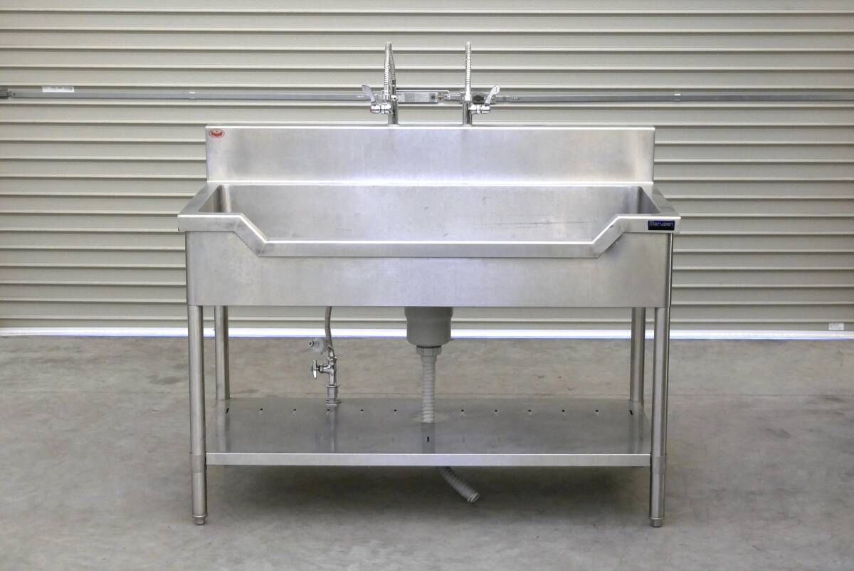 zyt2564ジ マルゼン ステンレス製 業務用舟型シンク BSF1-126 幅120cm 奥行60cm バックガード付 単水栓2口付属 現状品『引取歓迎』71029-08 | |||