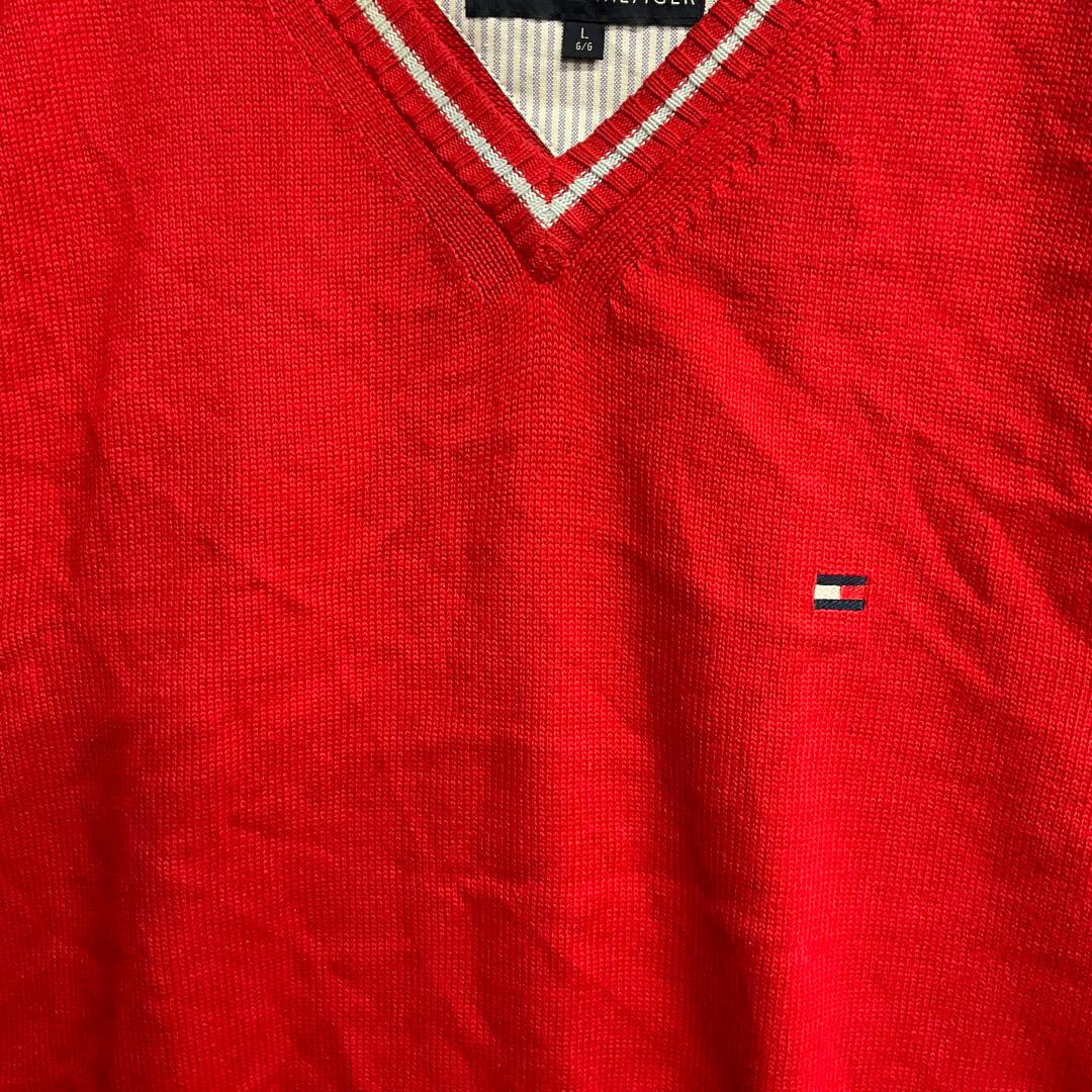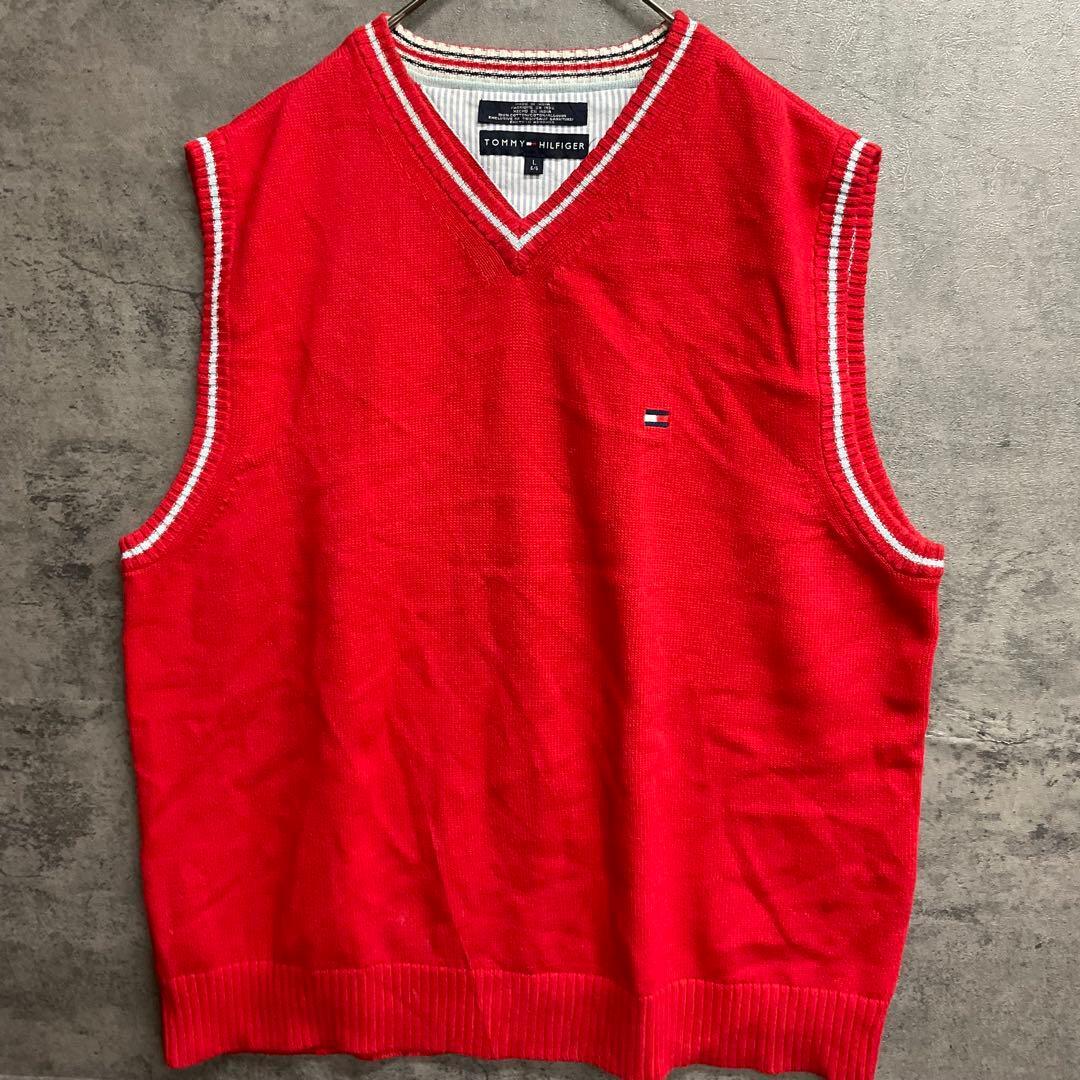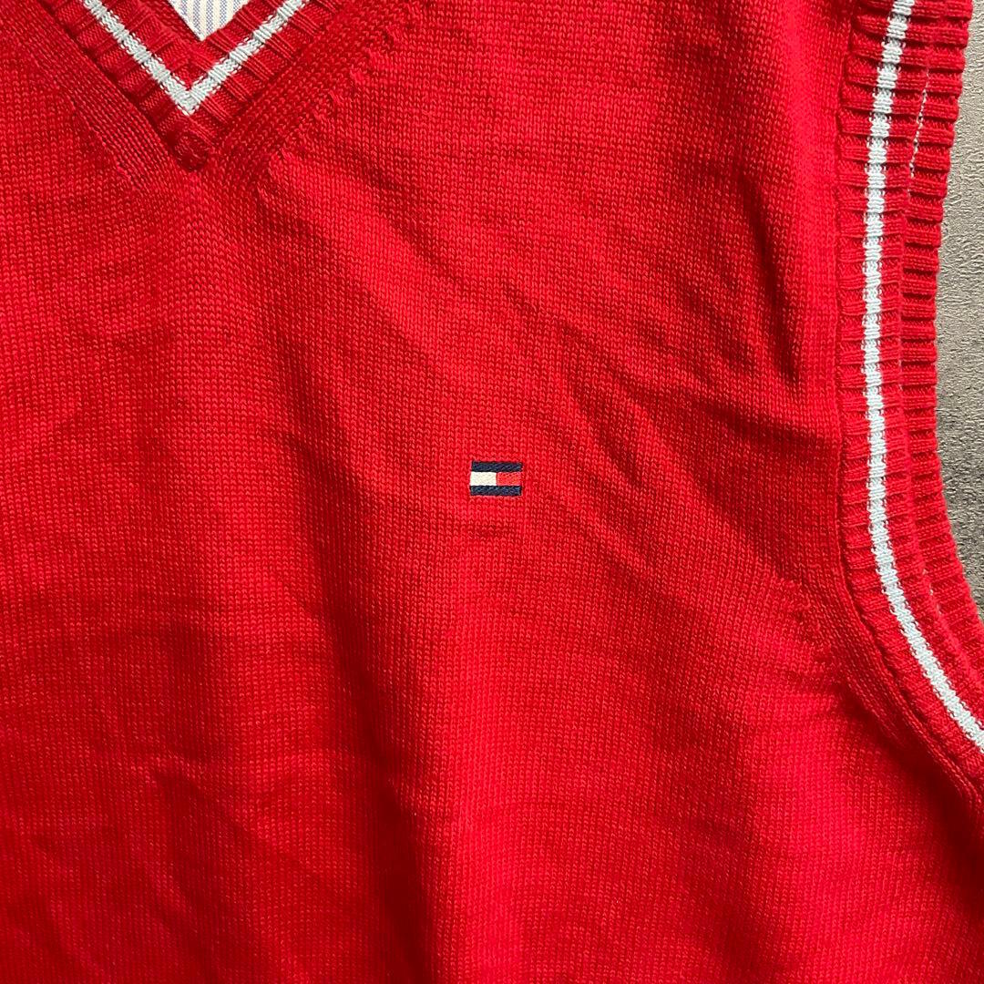 トミーヒルフィガーのVネックニットベスト。鮮やかなレッドにライン入りリブが映えるデザインで、胸元にはブランドの刺繍ロゴ入り。シャツとのレイヤードでプレッピースタイルにもおすすめの一枚です。| 出价者 | 信用 | 价格 | 时间 |